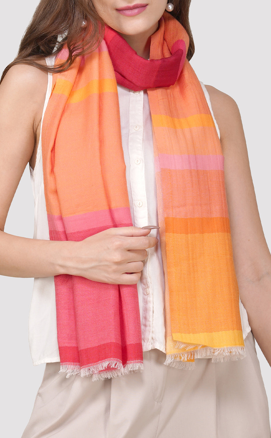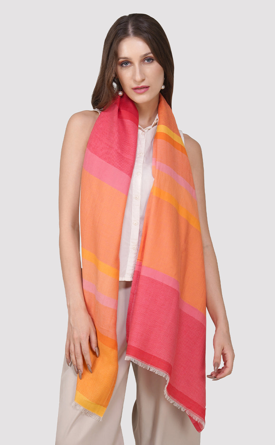 Regular price Rs. 4,000.00 Sale price Rs. 3,200.00 Save 20%Luxurious merino wool stole in multicolor squash colors with a satin weave, perfect for fall and winter weather. Wrap yourself in this soft and lush piece