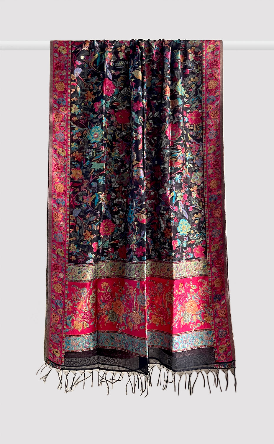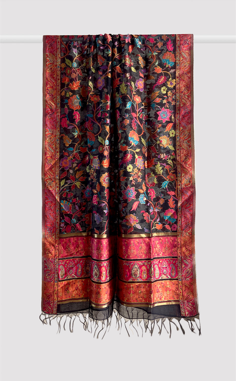 Regular price Rs. 15,000.00Our traditional kani stole is a woven work of art made of colored threads to create intricate, flowing motifs. This piece features beautiful kani work along with lush floral motifs and delicate designs. Classic and timeless, a Kani is a must have for any wardrobe