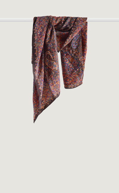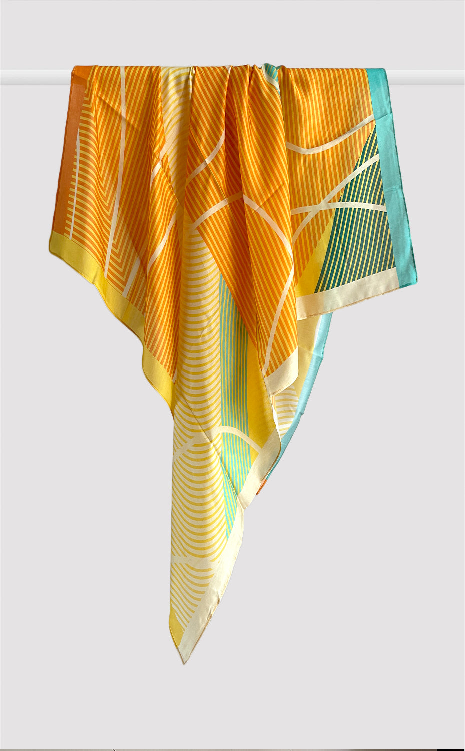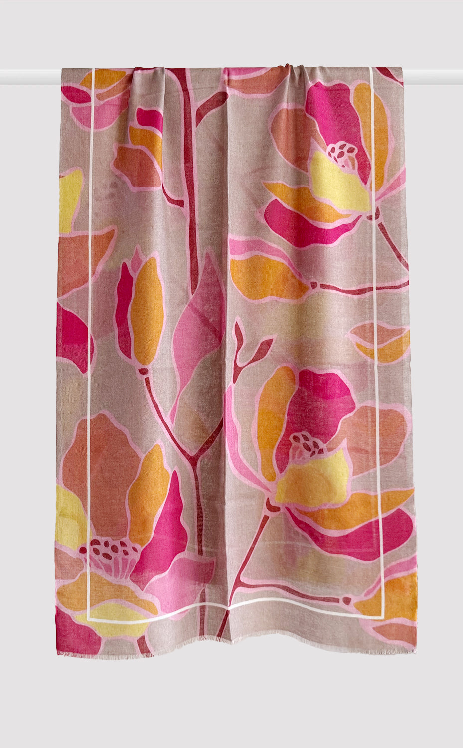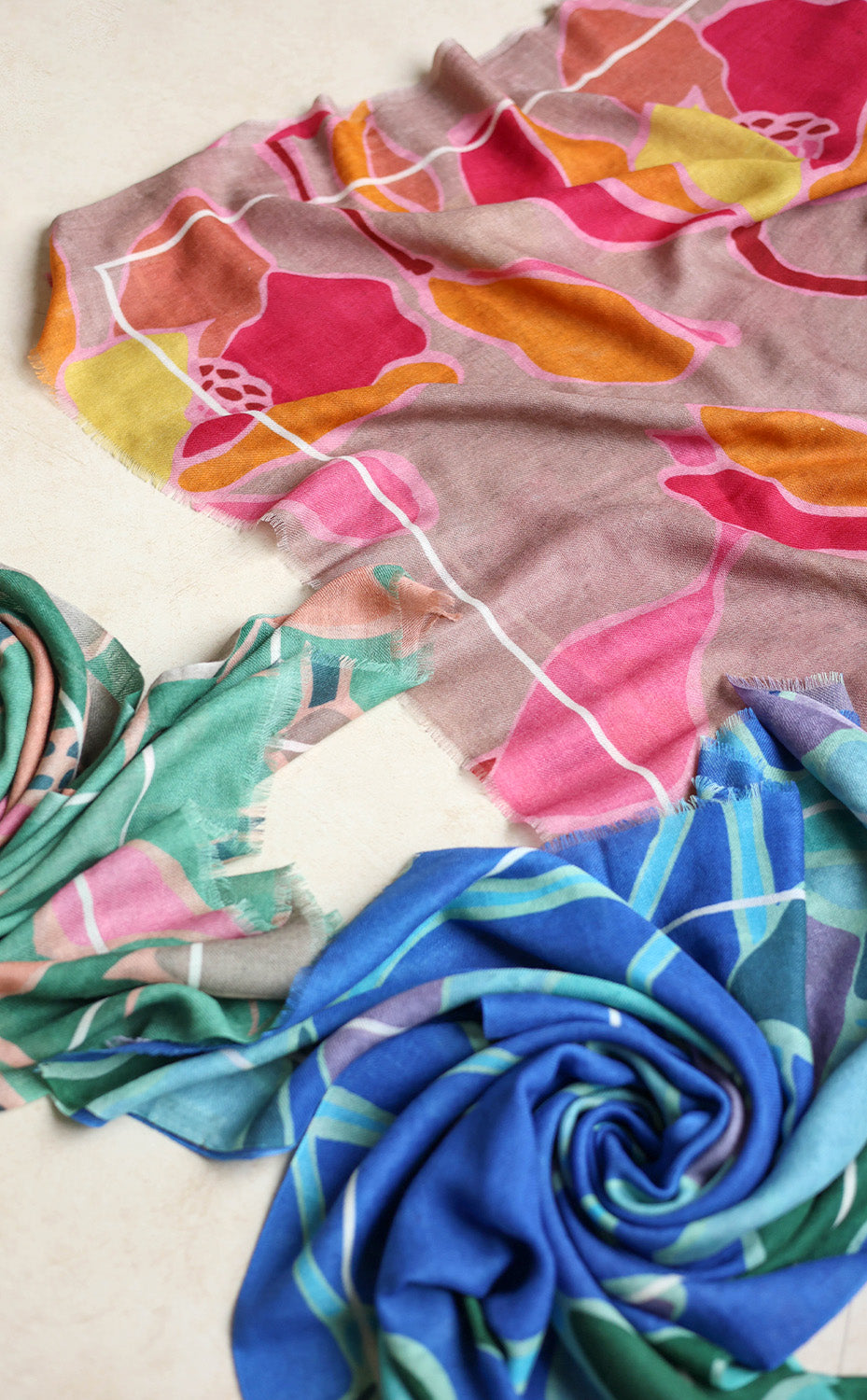 Luxurious modal silk shawl in beautiful coloured paint strokes. Each design is hand-painted and converted into a print for making into a shawl. Wear it with any outfit for a pop or colour and fizz