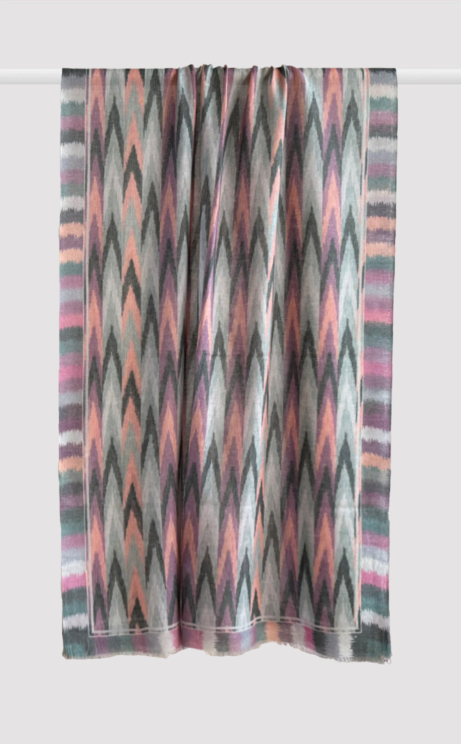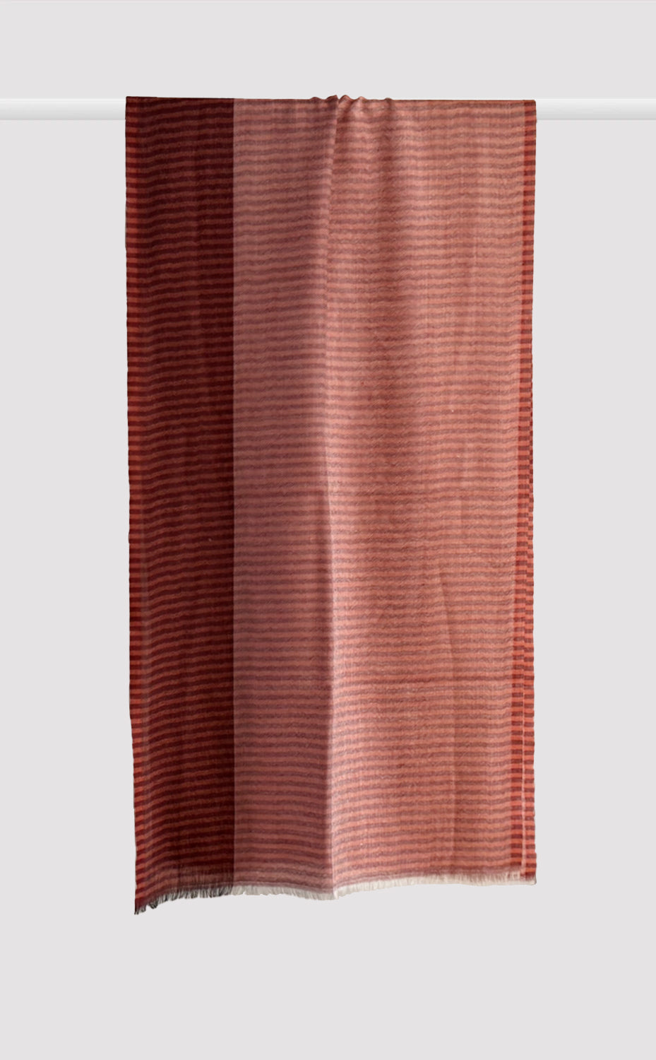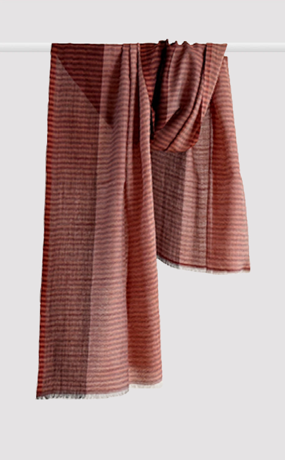 Regular price Rs. 4,500.00Luxurious fine wool stole with a beautiful striped design. The stole is featuring an asymmetrical stripe design woven by adding colors in the fabric warp. A fine wool blended with silk gives it an ultra soft & cosy feel, a classic & timeless piece made using the finest wool yarn