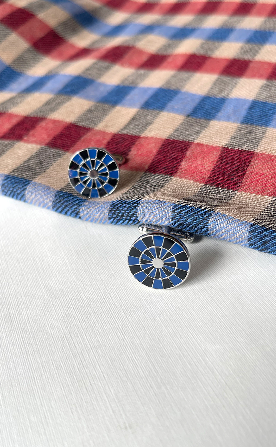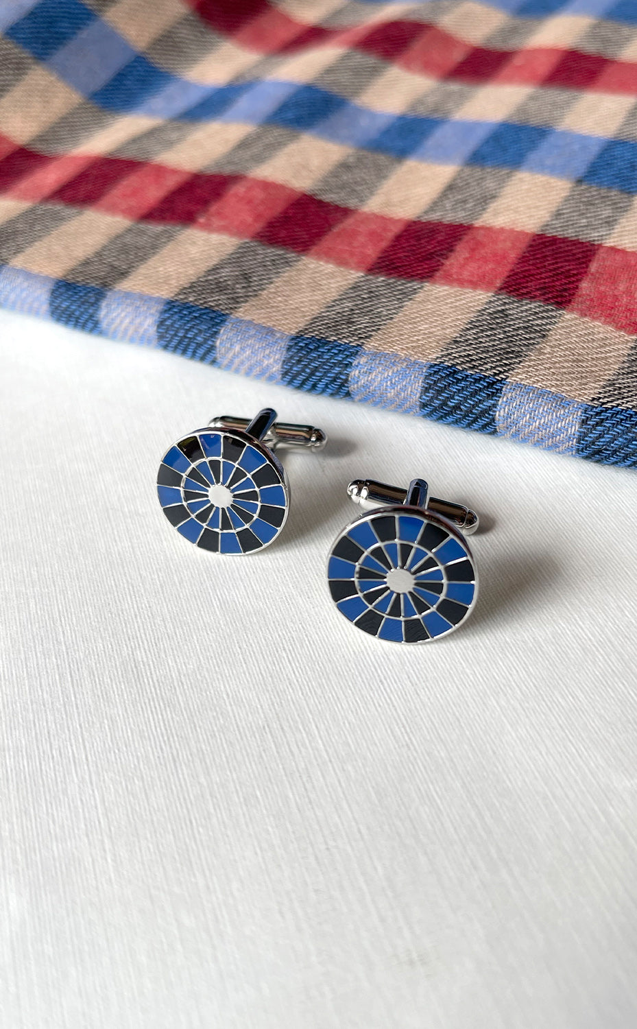 Regular price Rs. 3,800.00Inspired by the precision and sharp focus of a dartboard and highlighted with striking concentric rings of deep blue and black enamel, these unique cufflinks capture the spirit of competitive style.