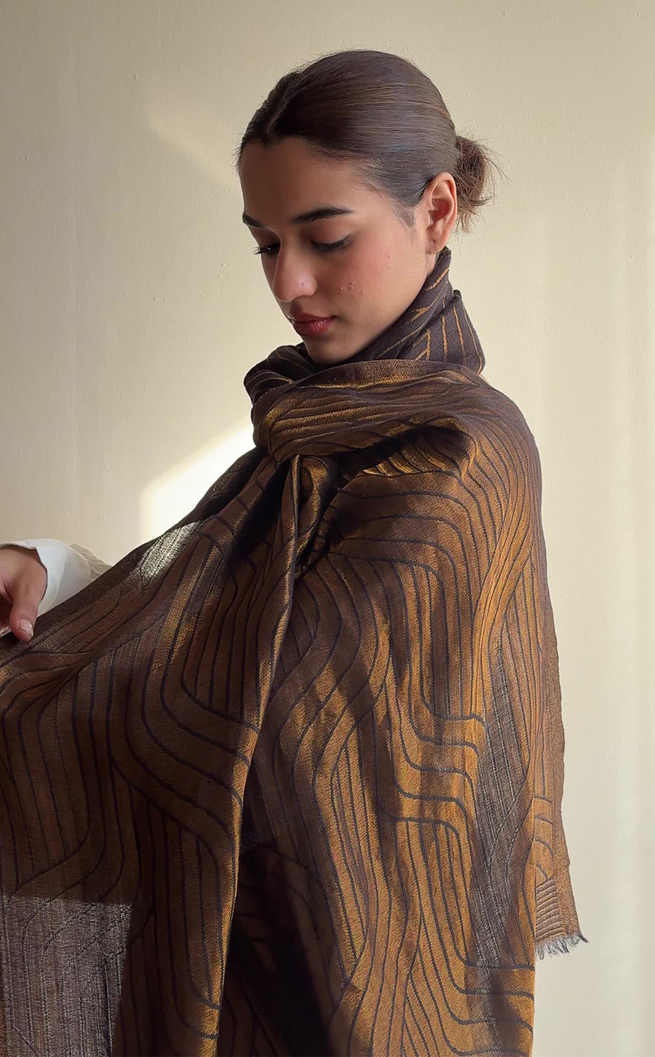 Regular price Rs. 6,000.00Luxurious fine wool stole in a festive chocolate brown shade and zari geometric design. The all over woven zari gives a seamless & elegant festive look. The perfect accessory for the festive winter season that will elevate all your outfits