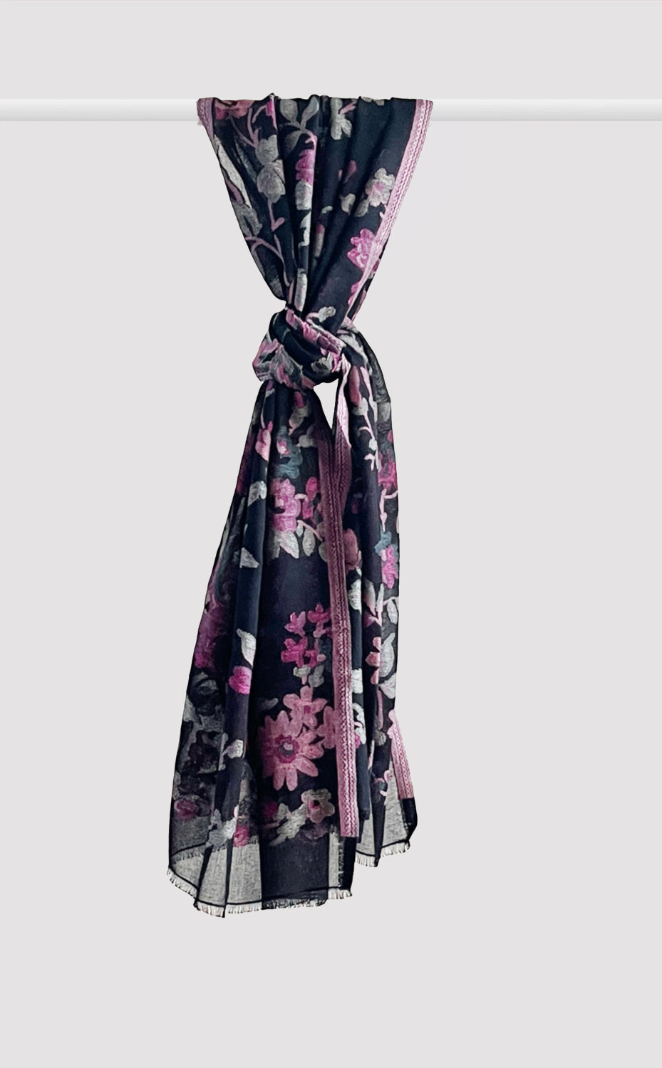 Regular price Rs. 2,300.00Lovely floral stole with band like stripes in shades of rouge. Makes a beautiful stole to wear over your dresses & tops. Gives a luxuriously soft feel in ultra fine cotton