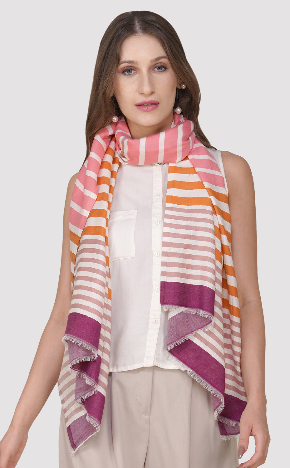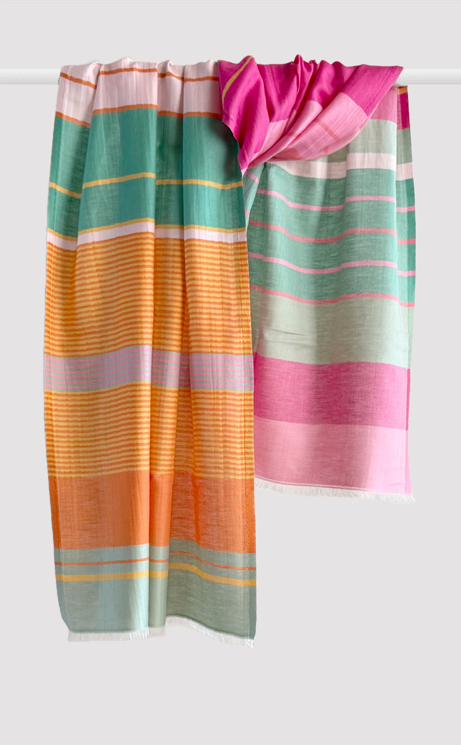Regular price Rs. 2,200.00Our all new cotton stripes with thinly woven stripes and pastel shades of orange to give a beautiful ombre effect. Perfect for your summer to light winter travels to keep you warm and stylish at the same time