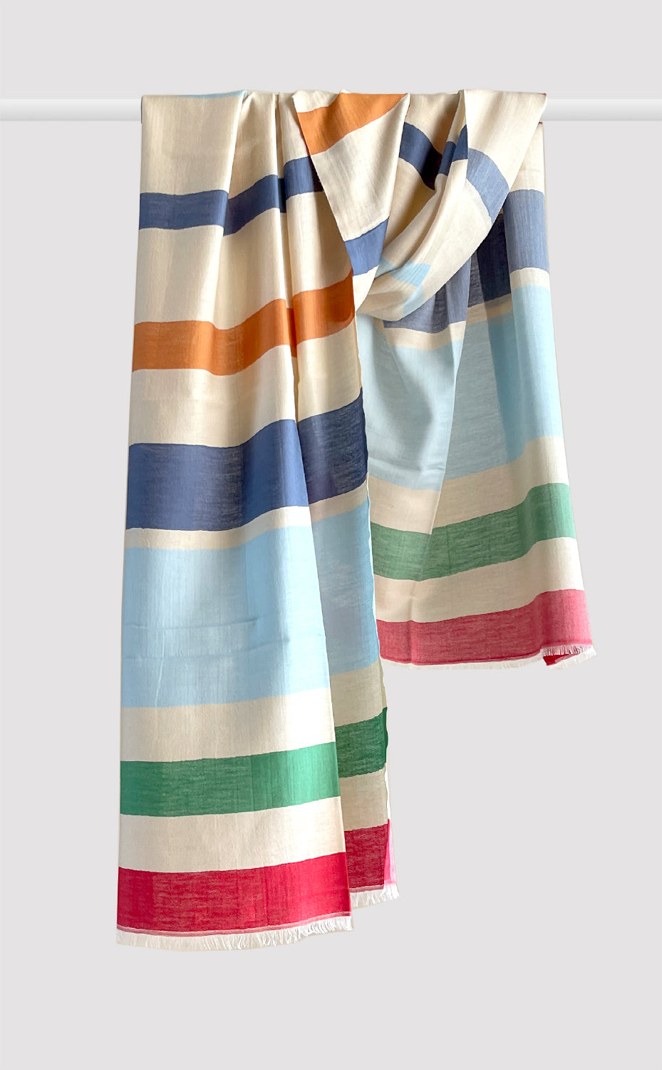 Regular price Rs. 2,200.00Luxurious fine cotton stole in multicolored stripes, elegant yet striking. The perfect accessory for adding a touch of sophistication to any outfit