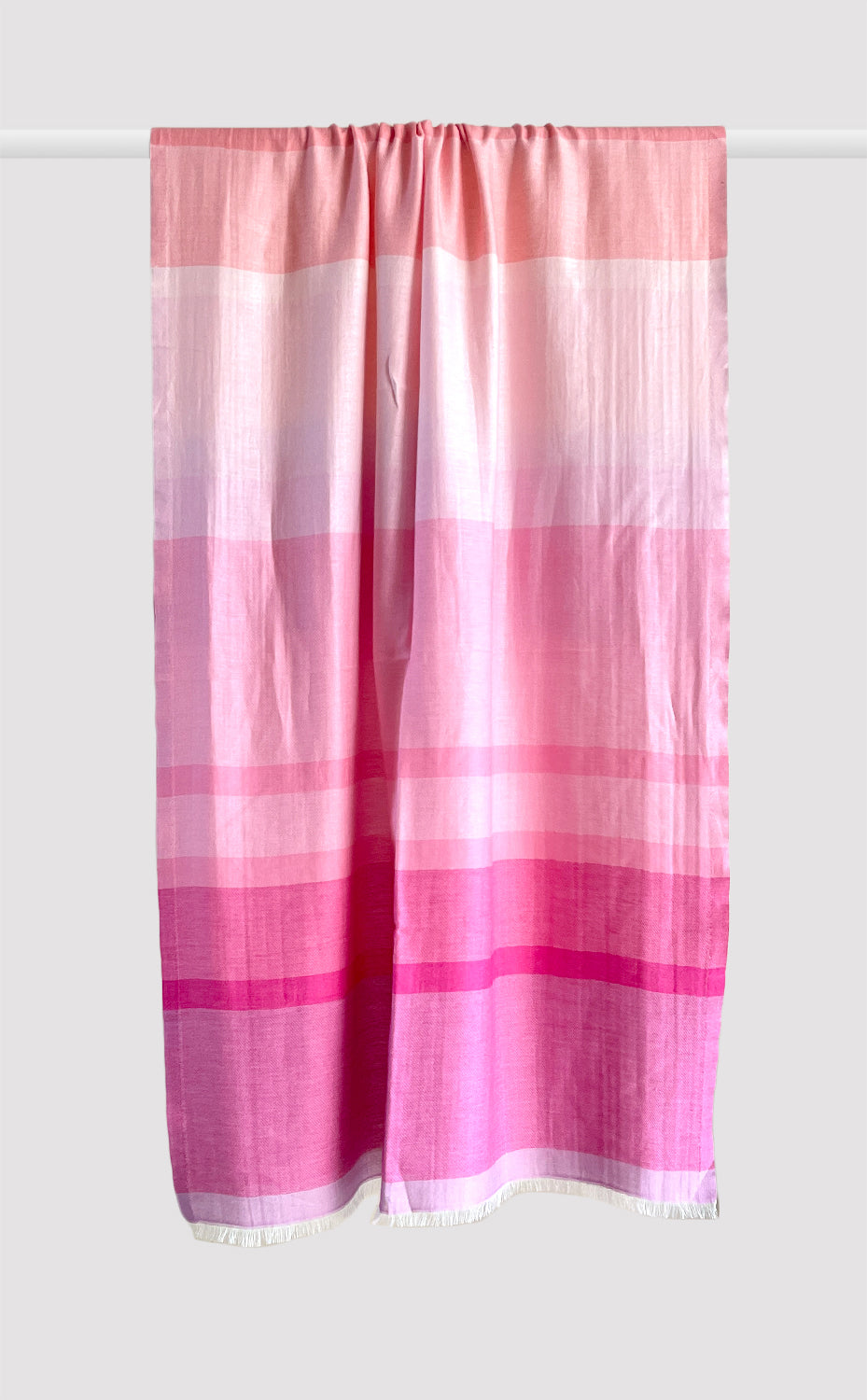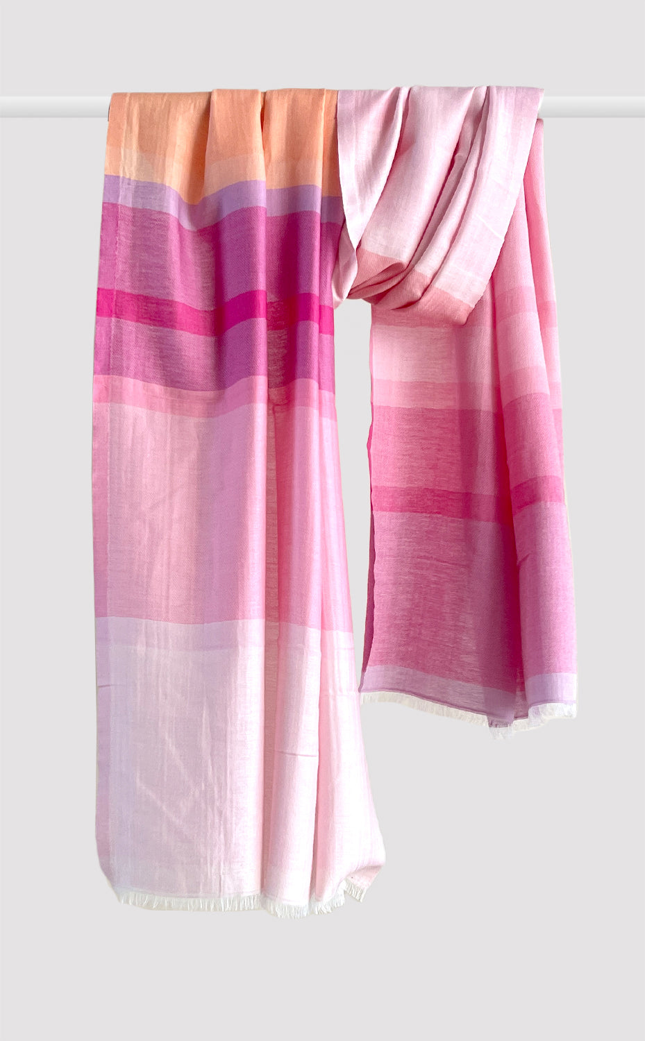 Luxurious fine cotton stole in beautiful pastel pink against a classic beige base