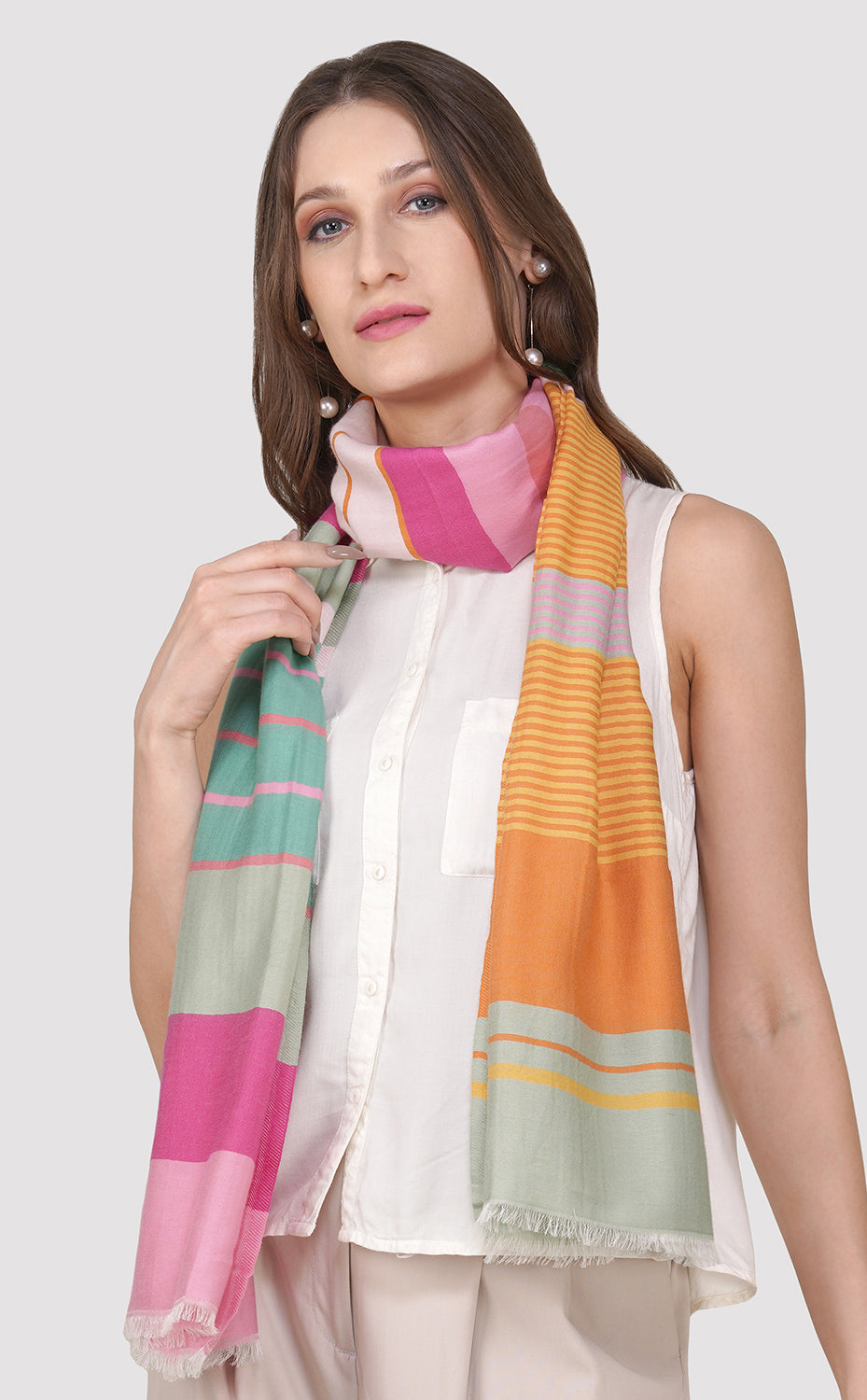 - Casual Chic: Pair the stole with a white blouse and denim jeans. Let it drape loosely around your neck for a relaxed look