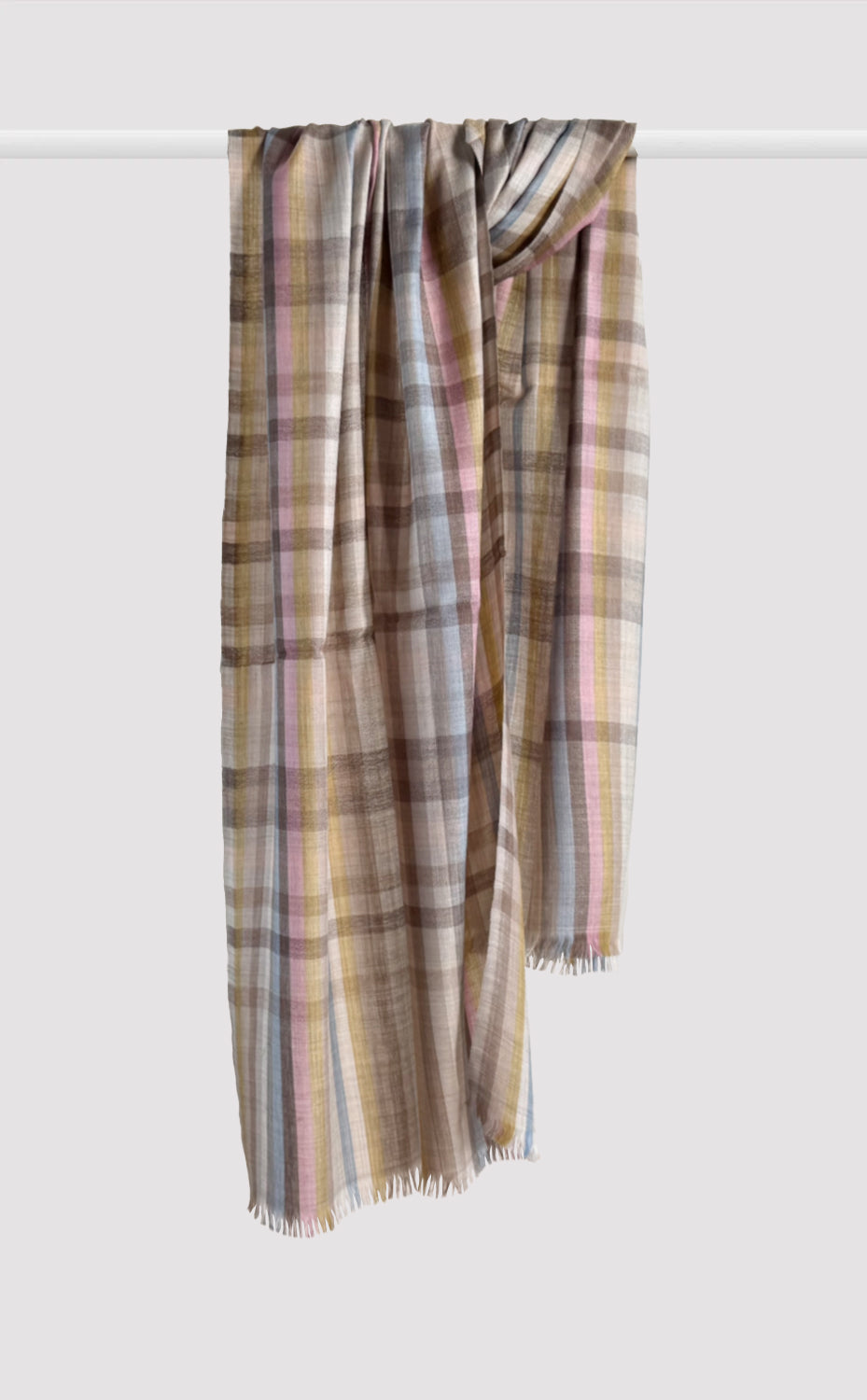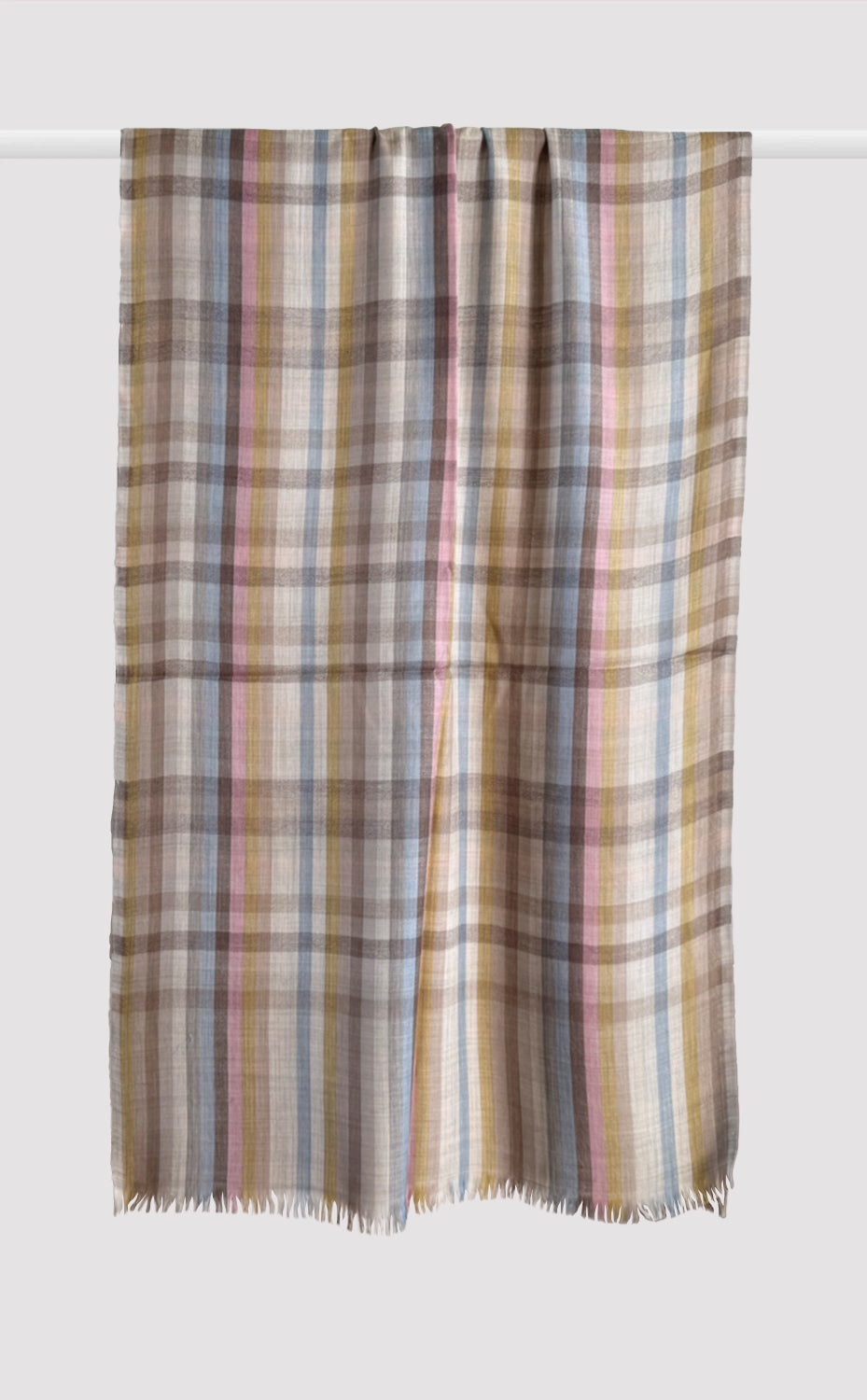 Regular price Rs. 4,500.00 Sale price Rs. 3,600.00 Save 20%Luxurious fine wool stole with beautiful checks and striped border. The fine wool blended with silk gives it an ultra soft & cosy feel with Gingham pattern which is made by overlapping stripes of the colour of the same width over each other. A classic & timeless piece made using the finest wool yarn