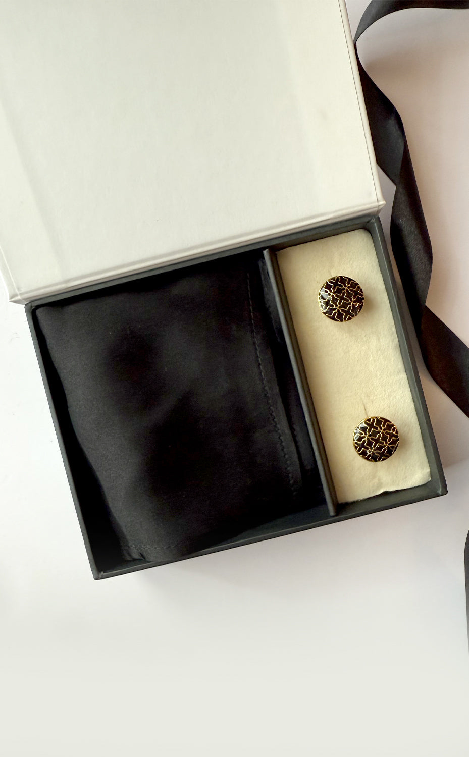 Regular price Rs. 6,000.00 Sale price Rs. 4,800.00 Save 20%Lovely geometric pocket square paired with our polka design cufflink added to make your gift versatile