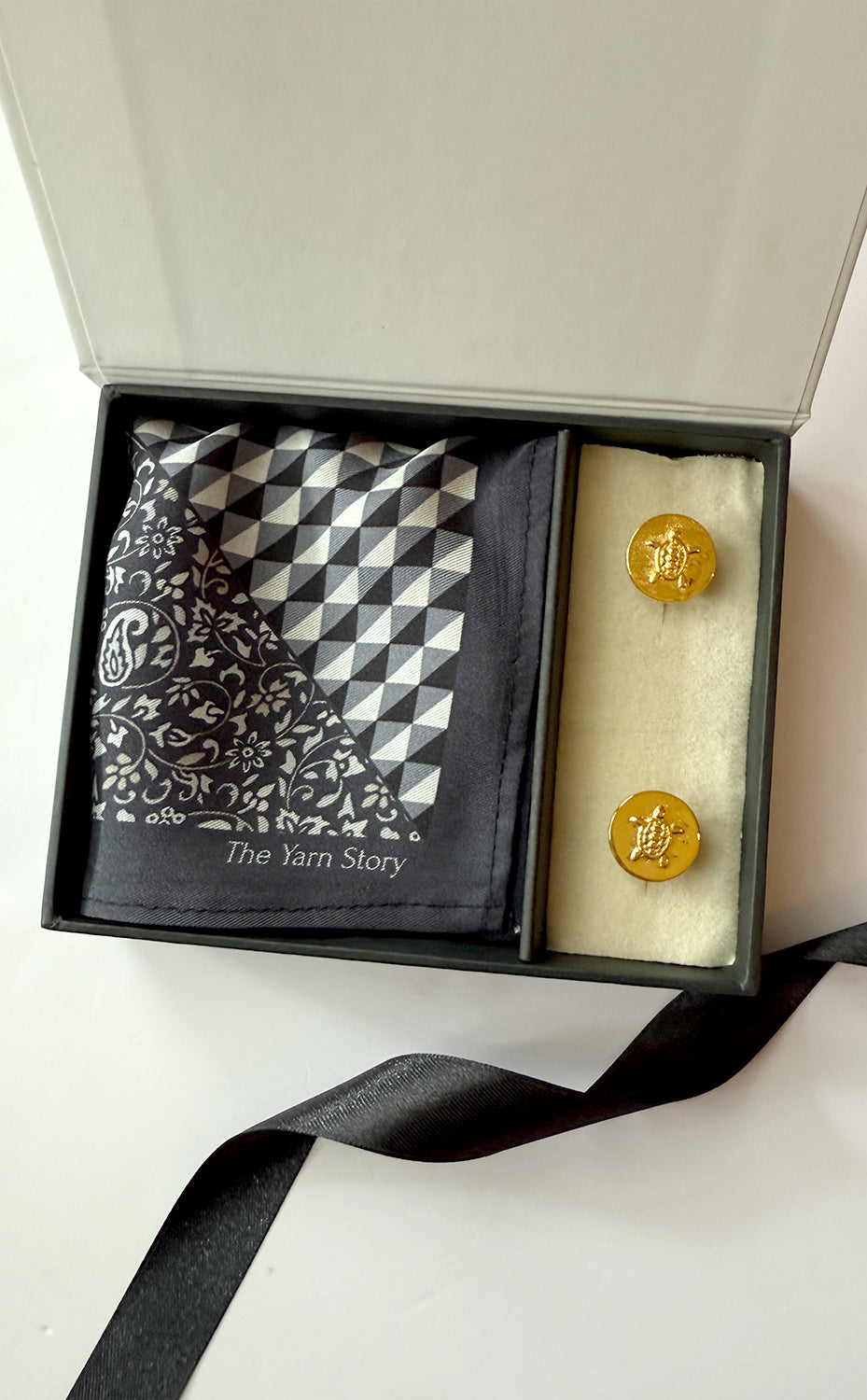 Regular price Rs. 8,000.00Luxurious fine twill muffler paired silk pocket square and our turtle design cufflink