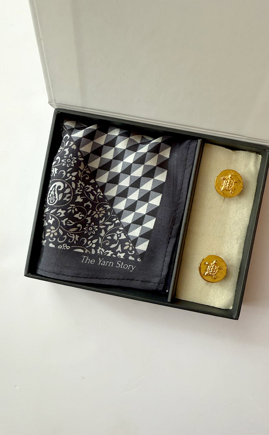 Regular price Rs. 6,000.00Lovely geometric pocket square paired with our turtle design cufflink added to make your gift versatile