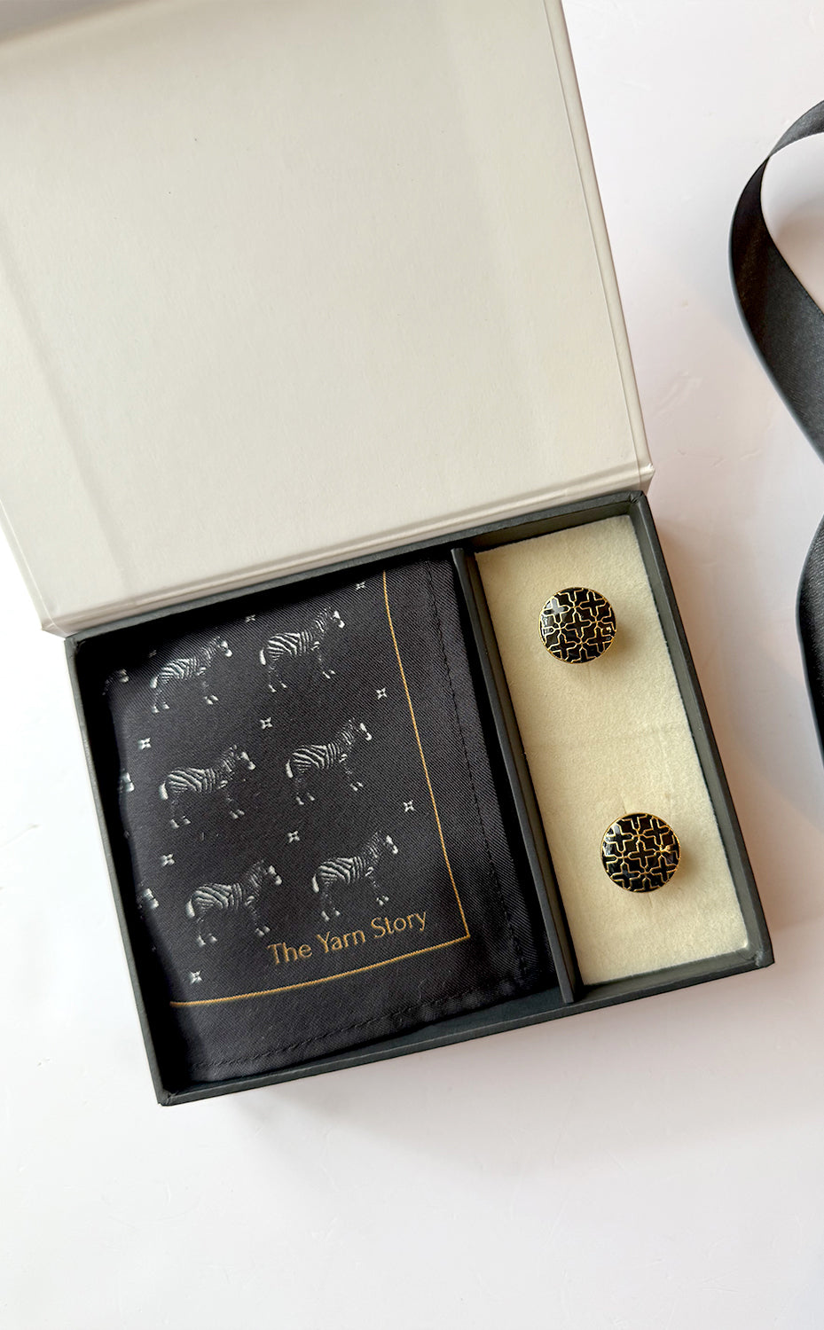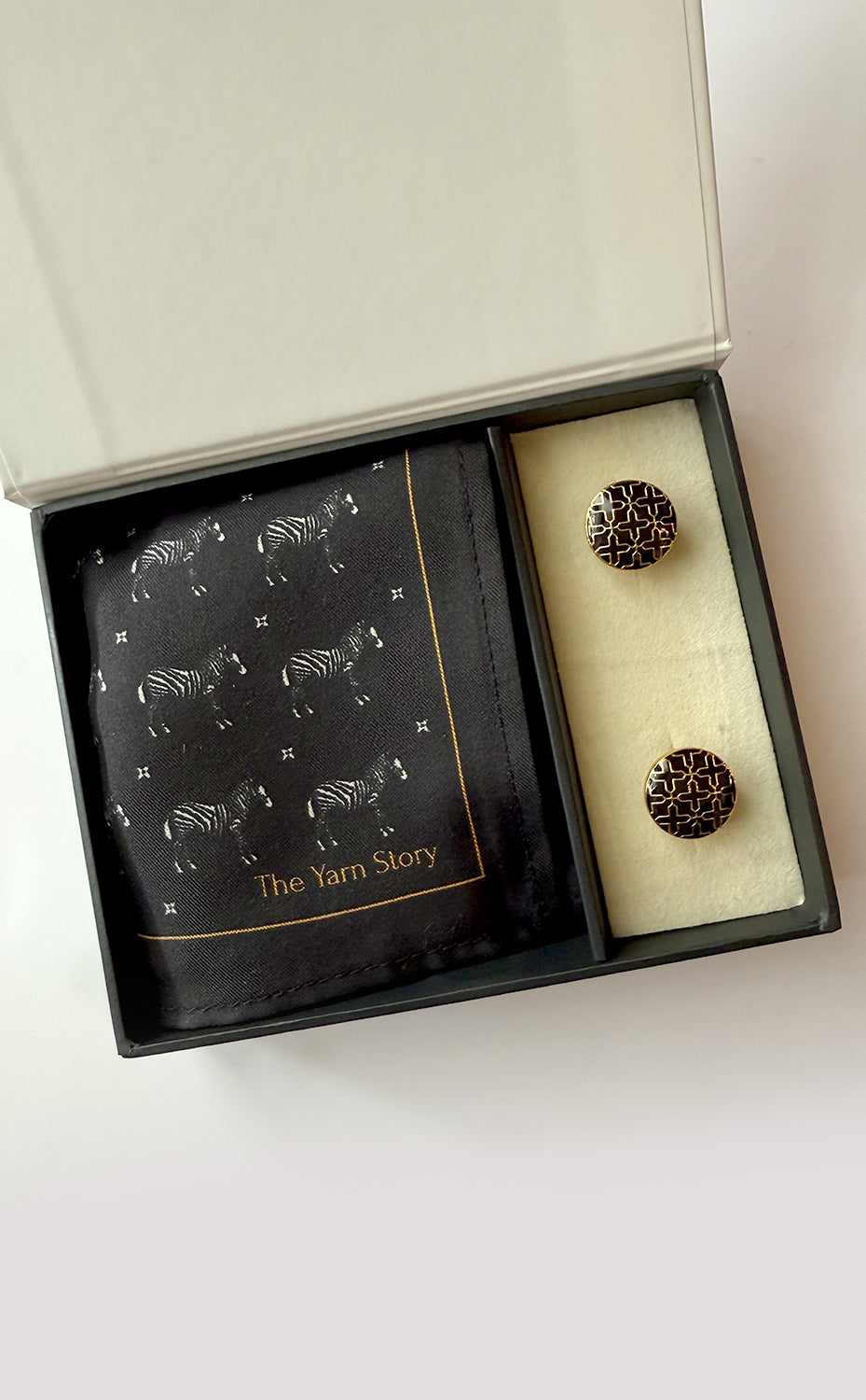 Regular price Rs. 5,000.00Lovely pocket square paired with our cobalt black cufflink