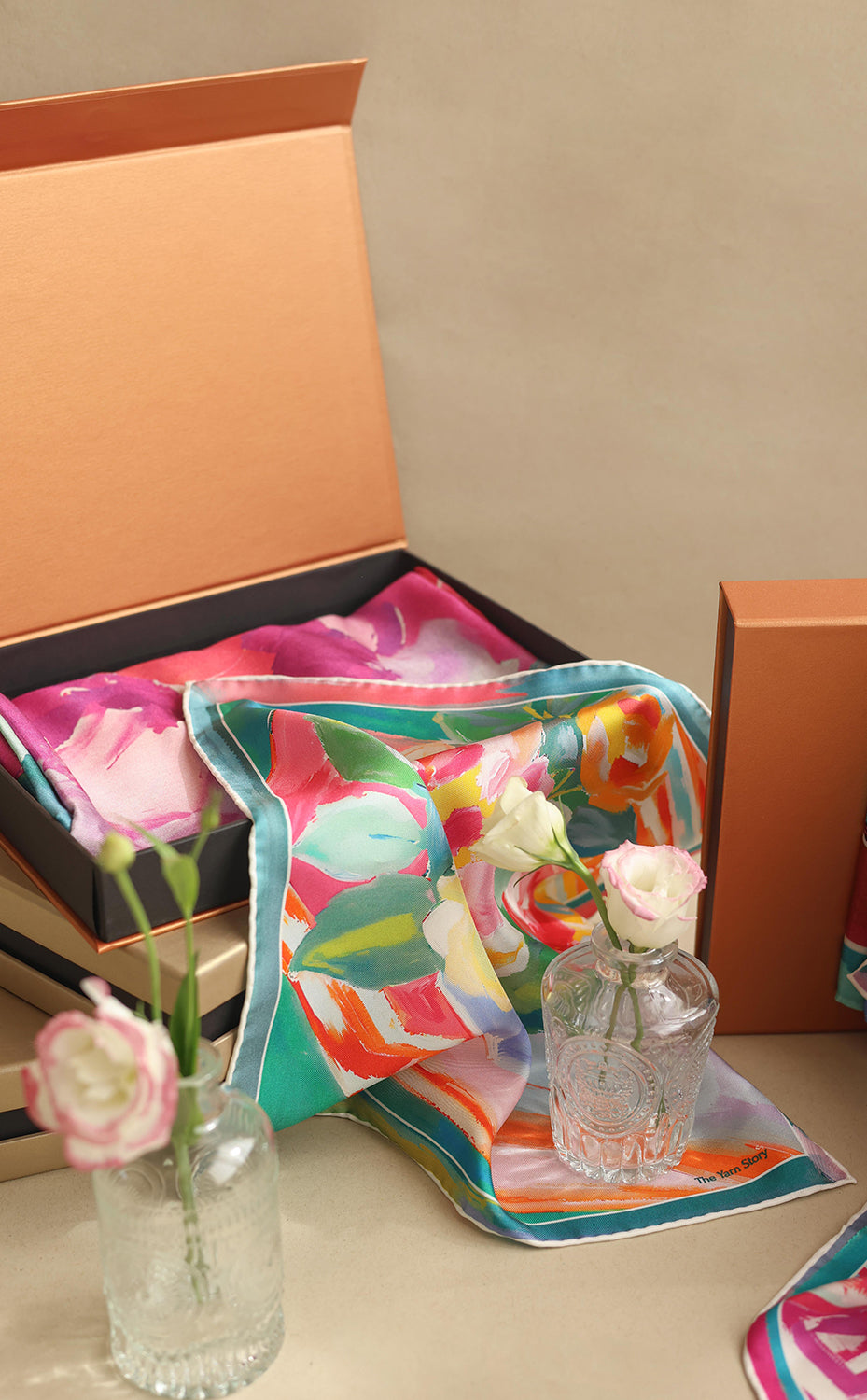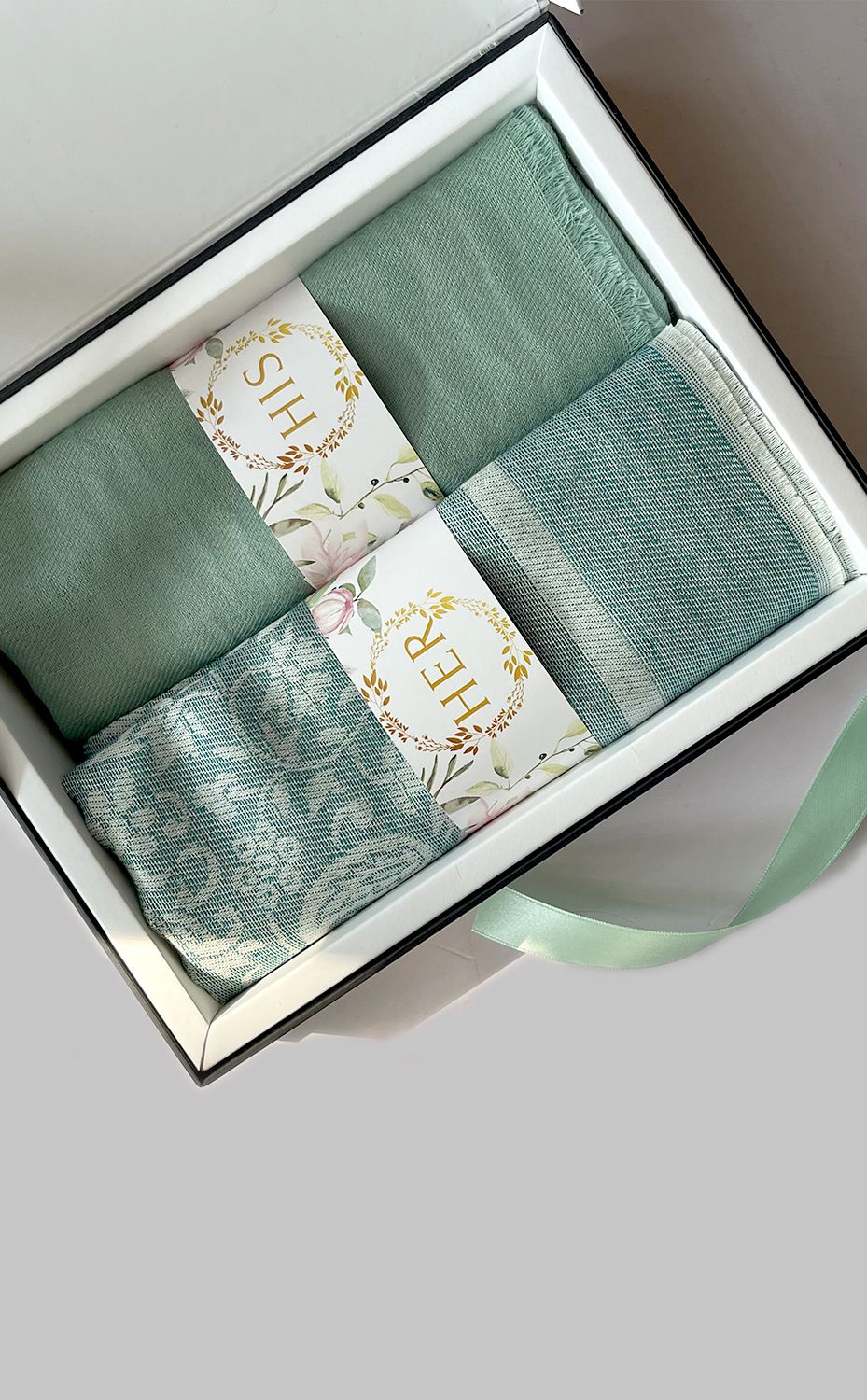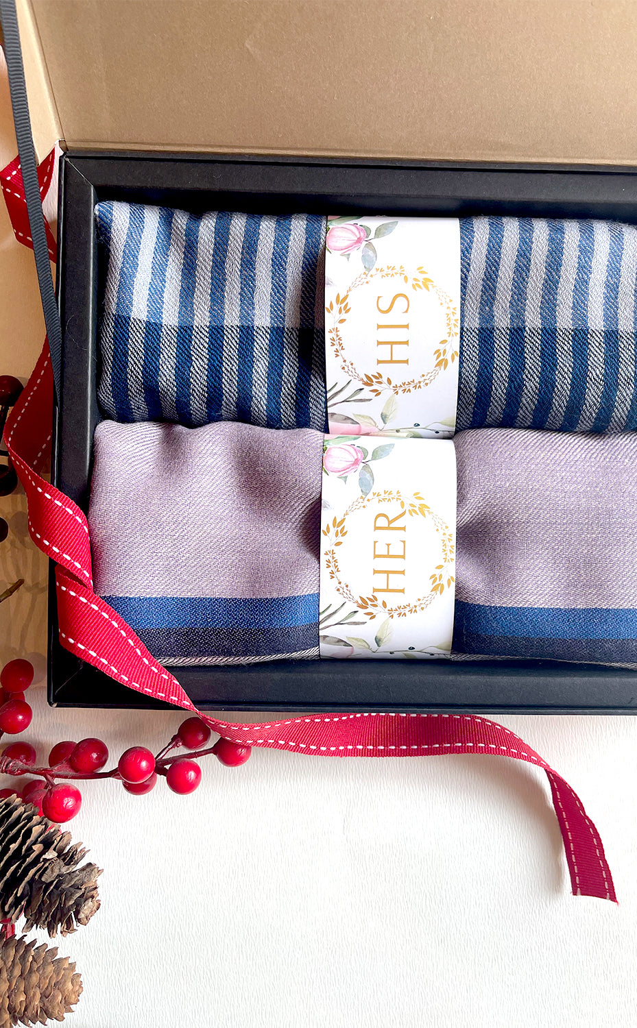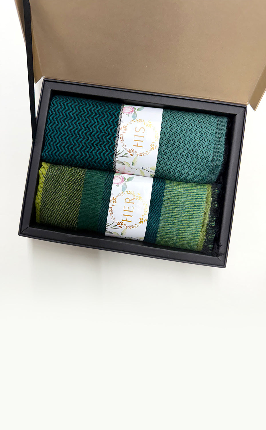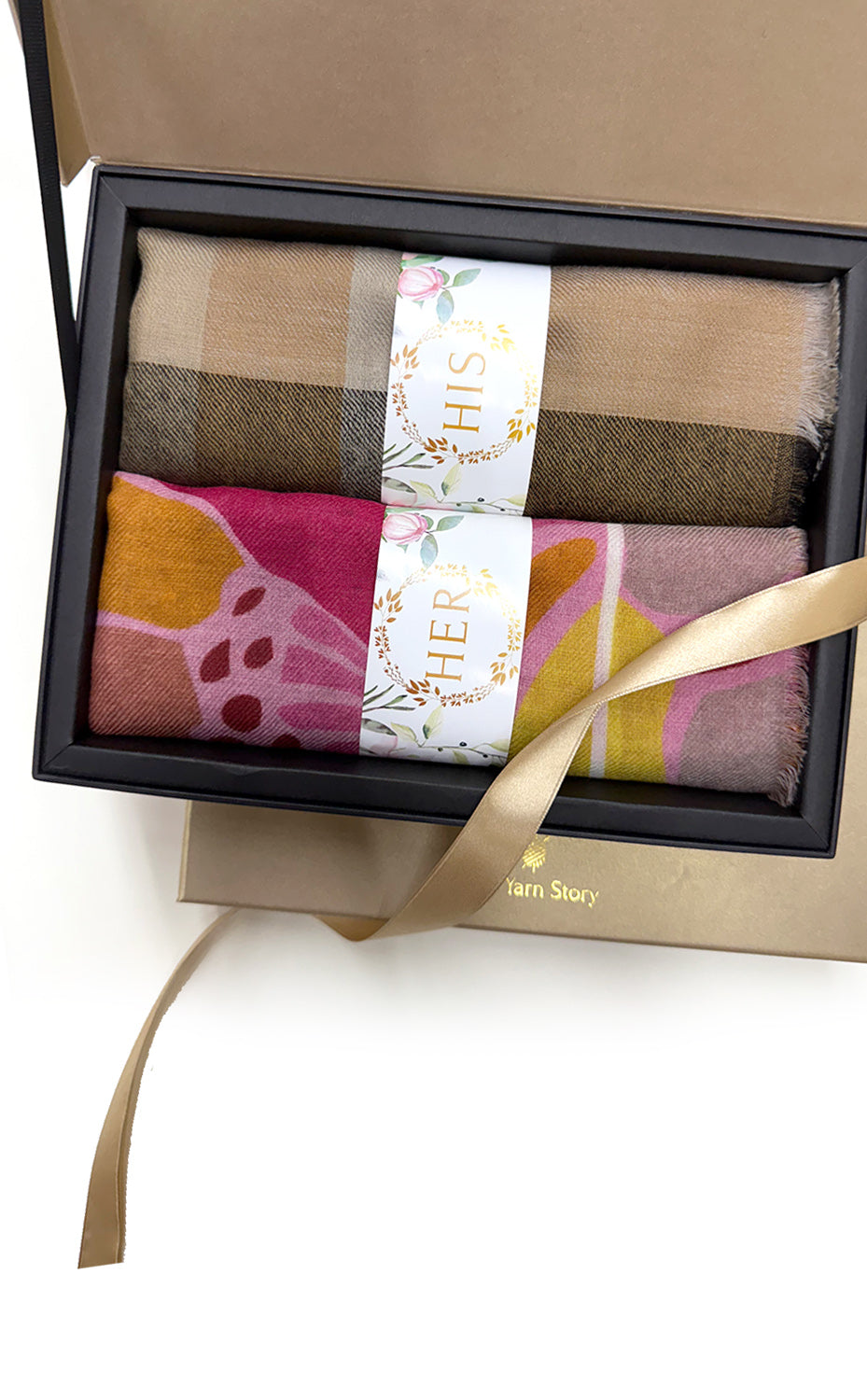 - White gift box packaging for the stole and muffler