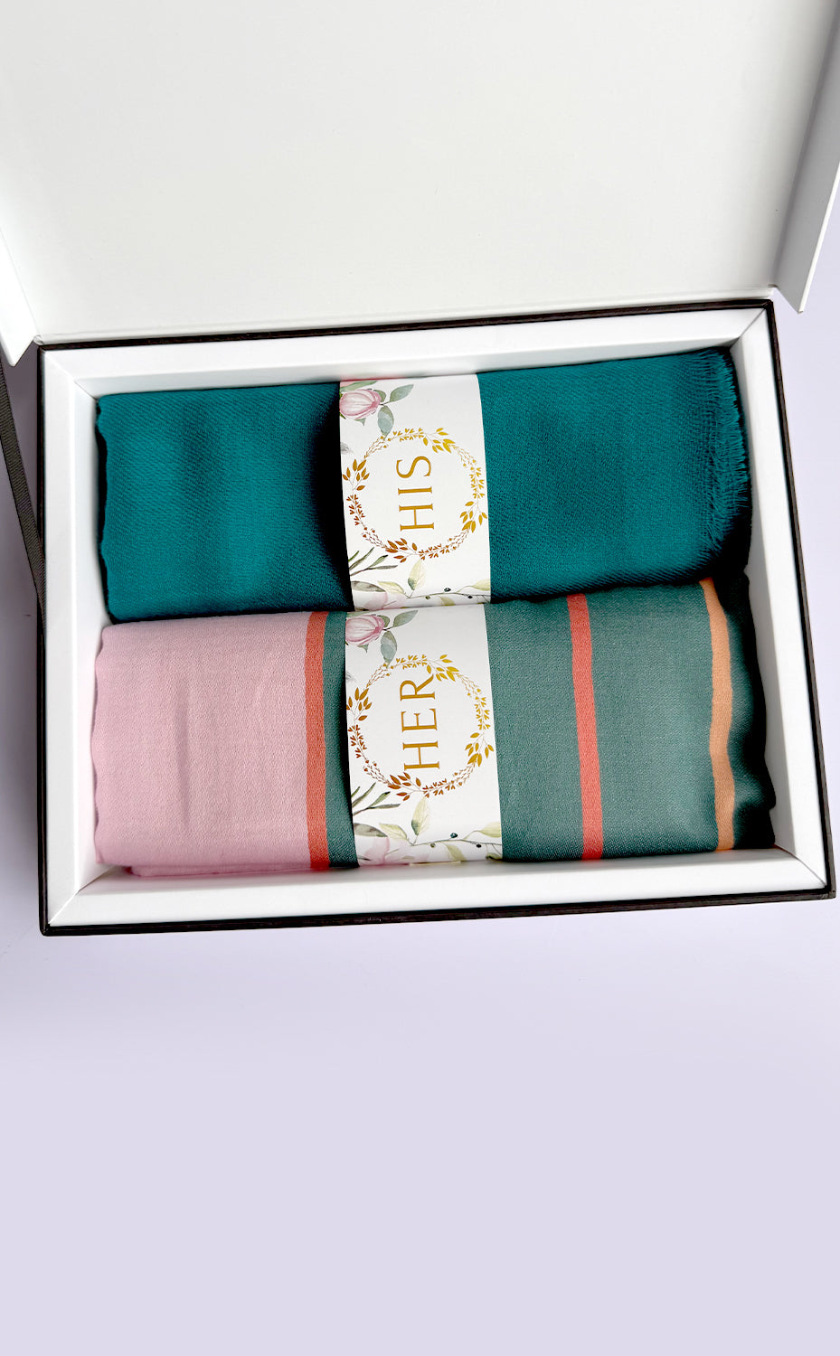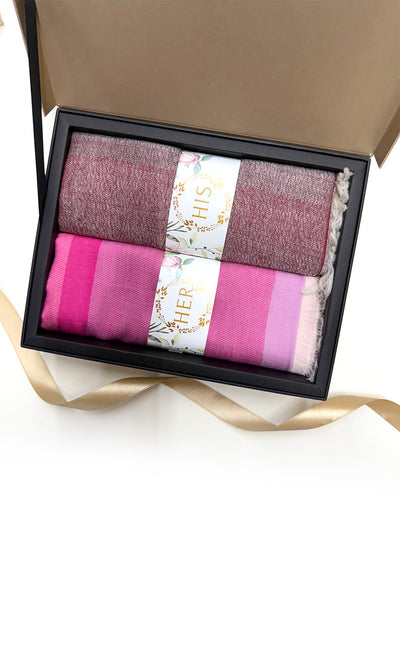 - Her: Pink Stripes in 100% Ultra Fine Cotton Stole—70 x 180 cm