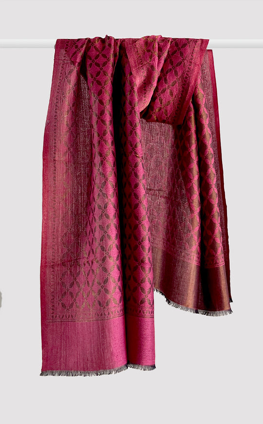 - Her: Wool Silk Zari Stole in 100% ultra fine wool : 70 cm x 180cm