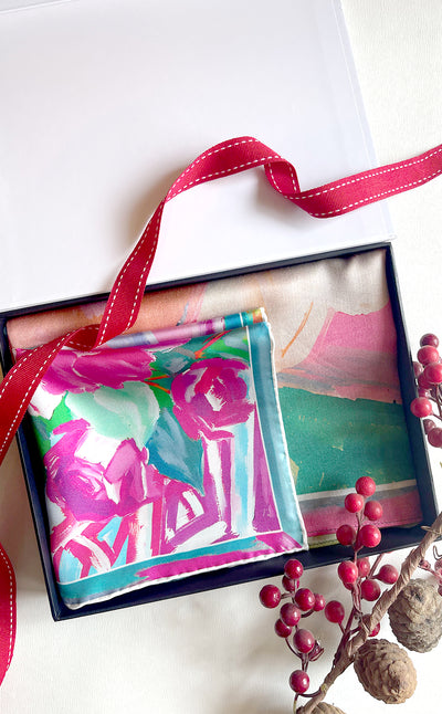 Regular price Rs. 7,200.00A beautiful floral silk scarf paired with a hand rolled floral pocket square makes a perfect his and hers set for the festive season.