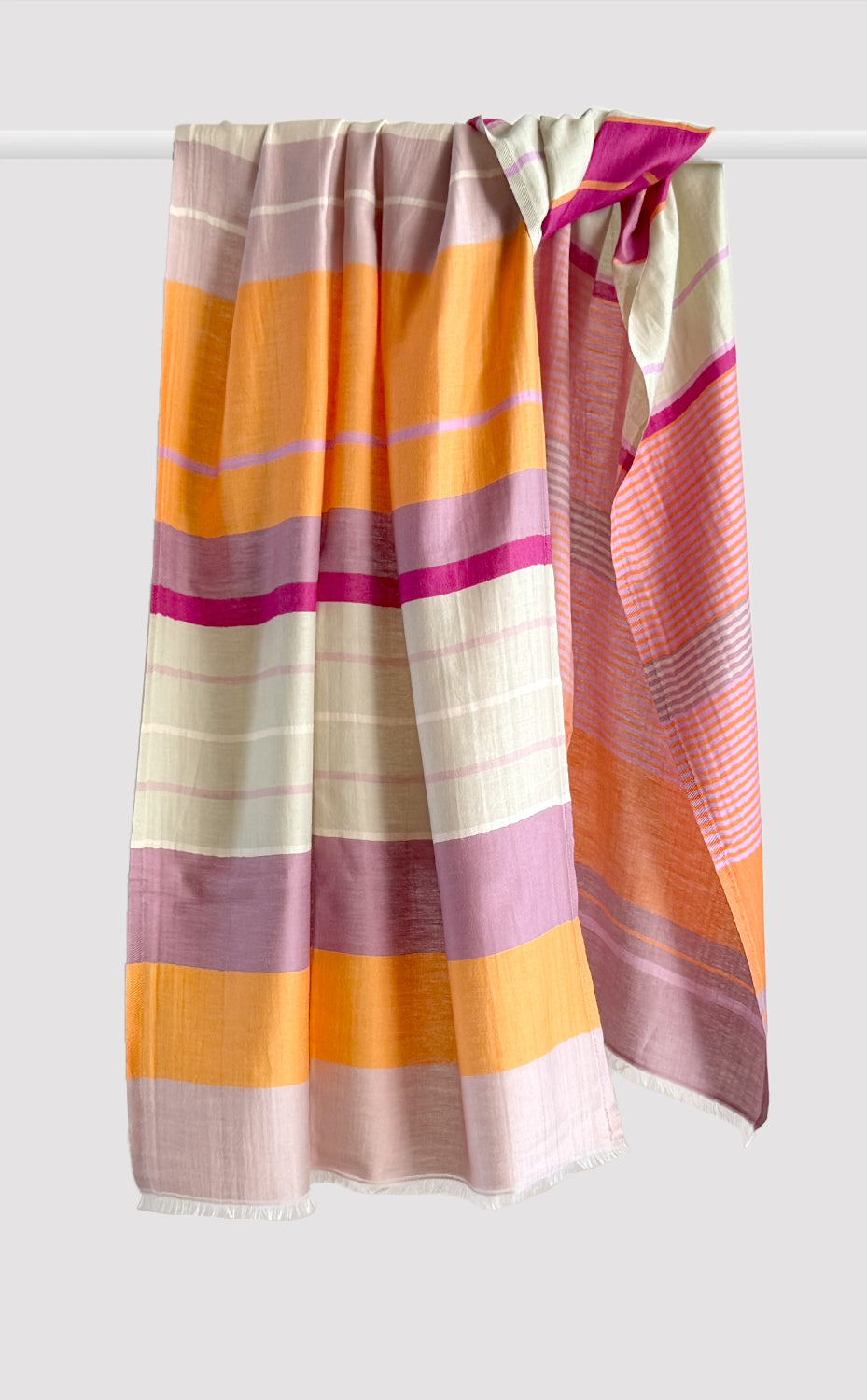 Regular price Rs. 5,000.00Luxurious linen modal stole in stripes paired with our lovely blush wool twill muffler.