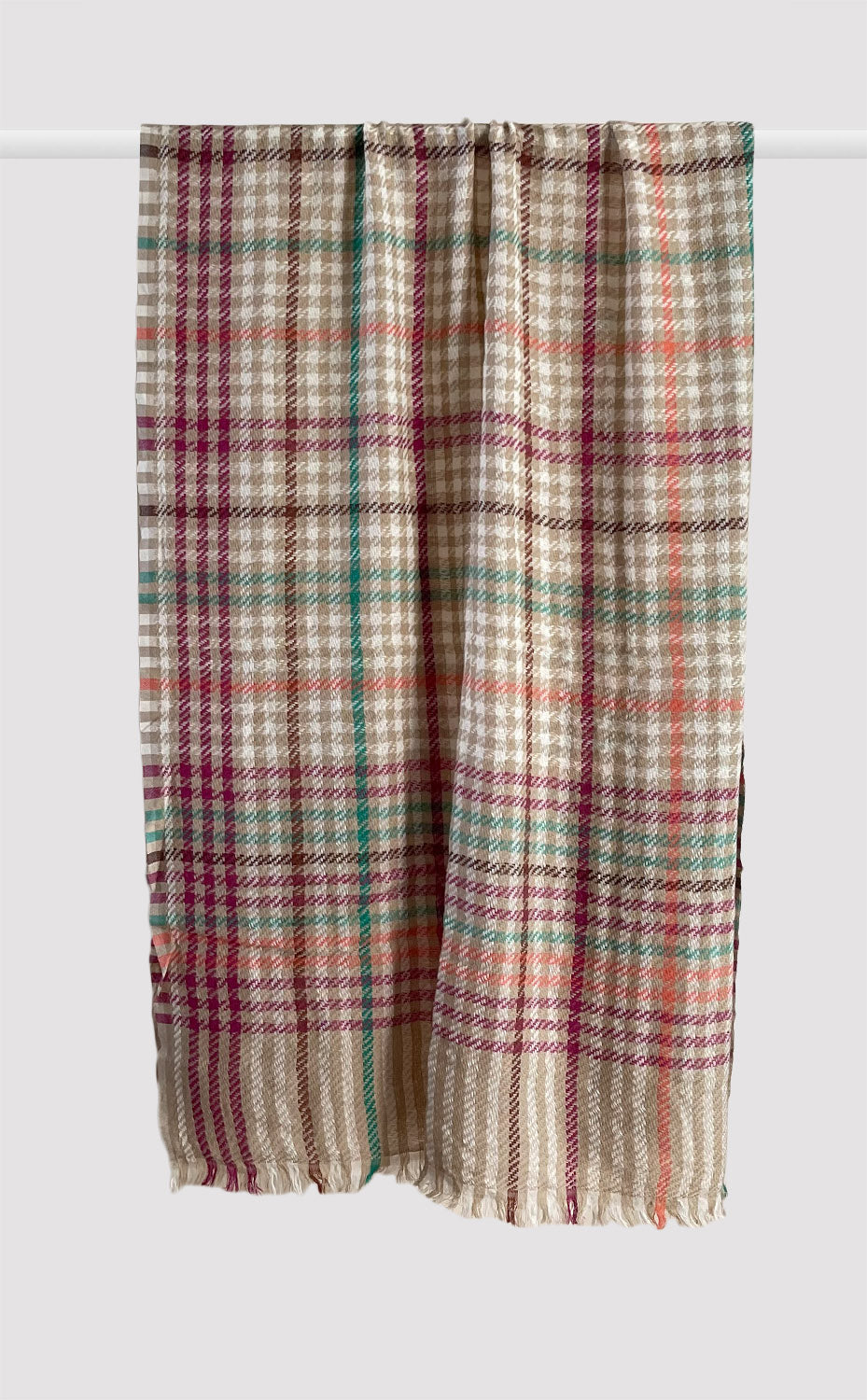 - Her: Sand Houndstooth Weave Stole in 100% ultra fine merino wool : 70 cm x 180cm