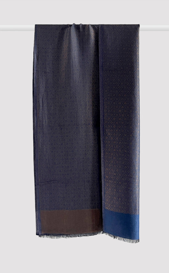 Regular price Rs. 8,500.00Luxurious silk stole with ikat design paired with our lovely navy blue wool twill muffler.