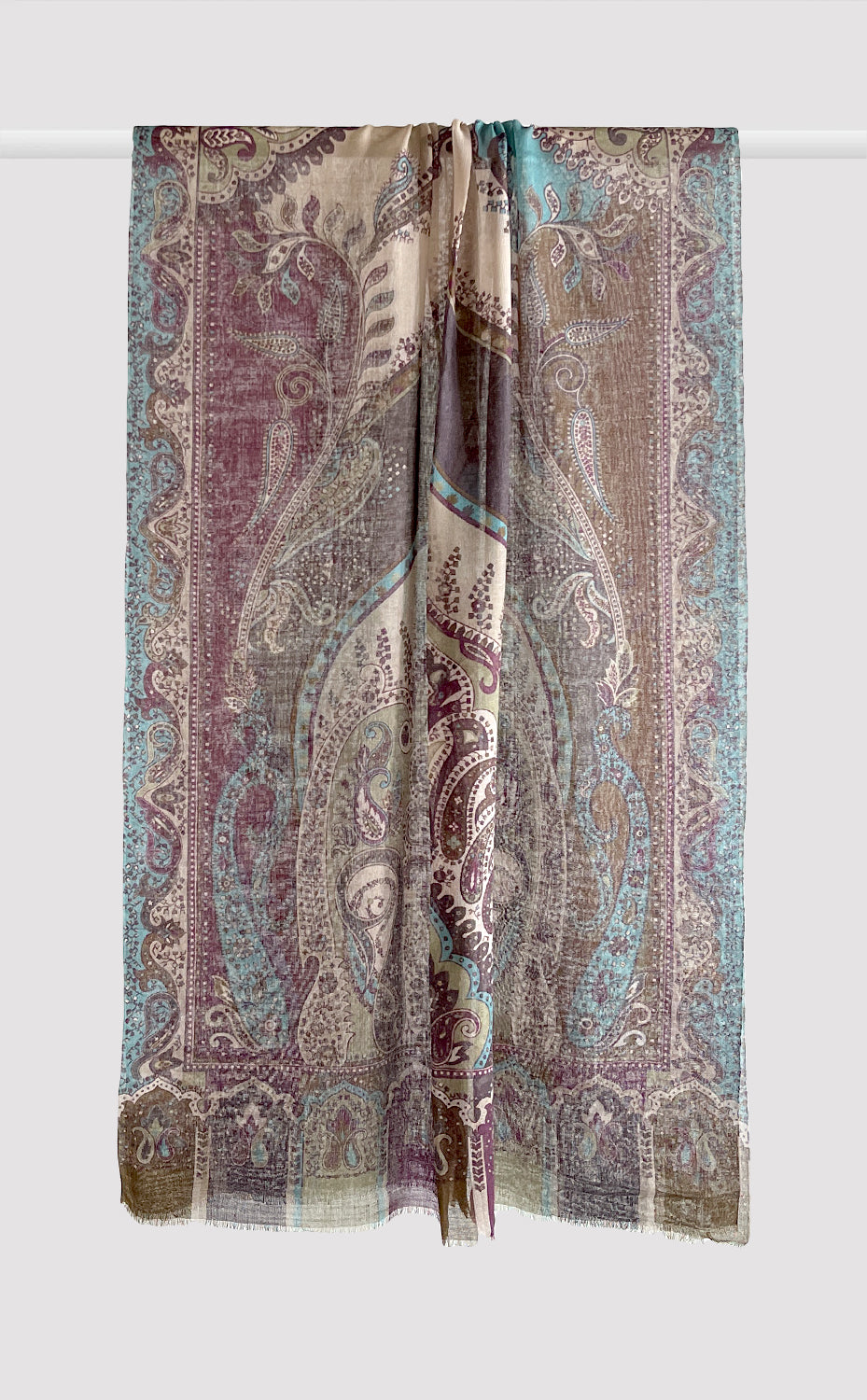 Regular price Rs. 4,300.00Luxurious slub cotton stole in turquoise colour, showcasing calm waves, paired with our lovely maroon wool twill muffler