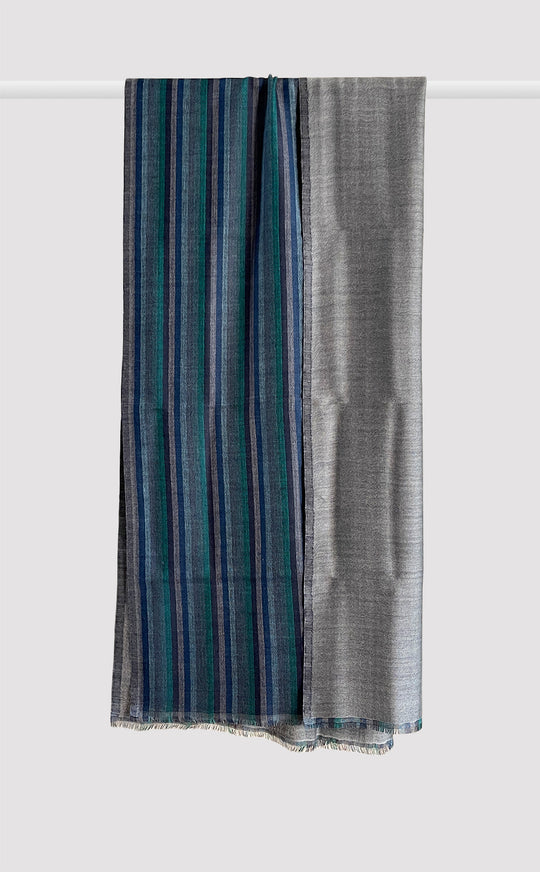 Regular price Rs. 4,200.00Luxurious cotton stripe stole paired with our lovely teal wool twill muffler.