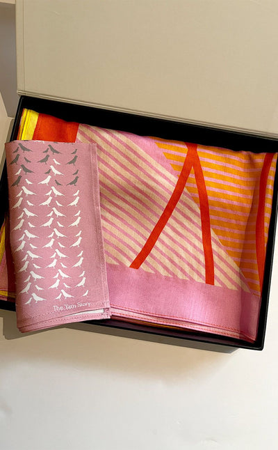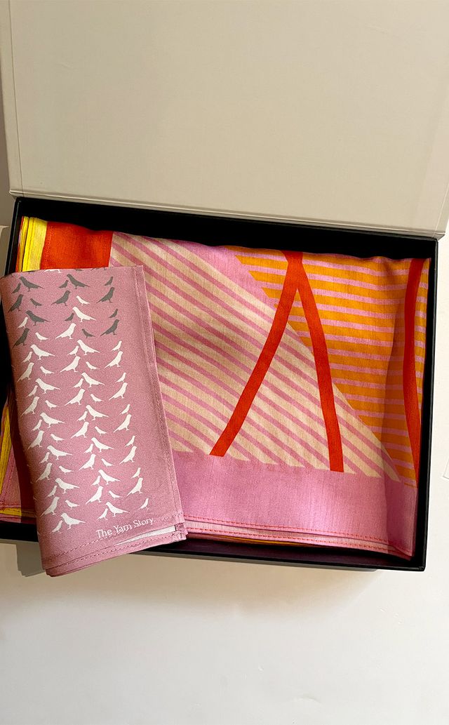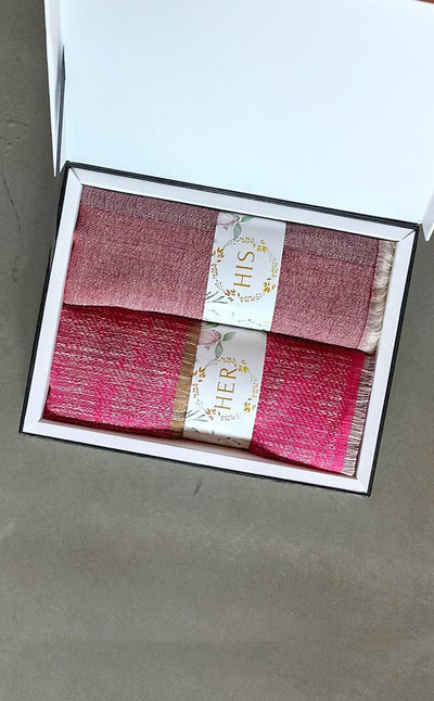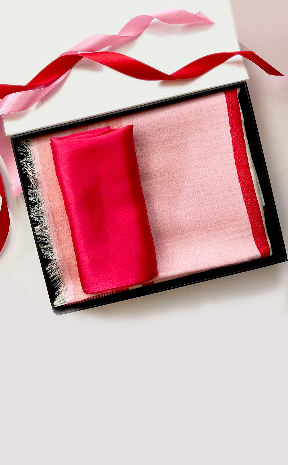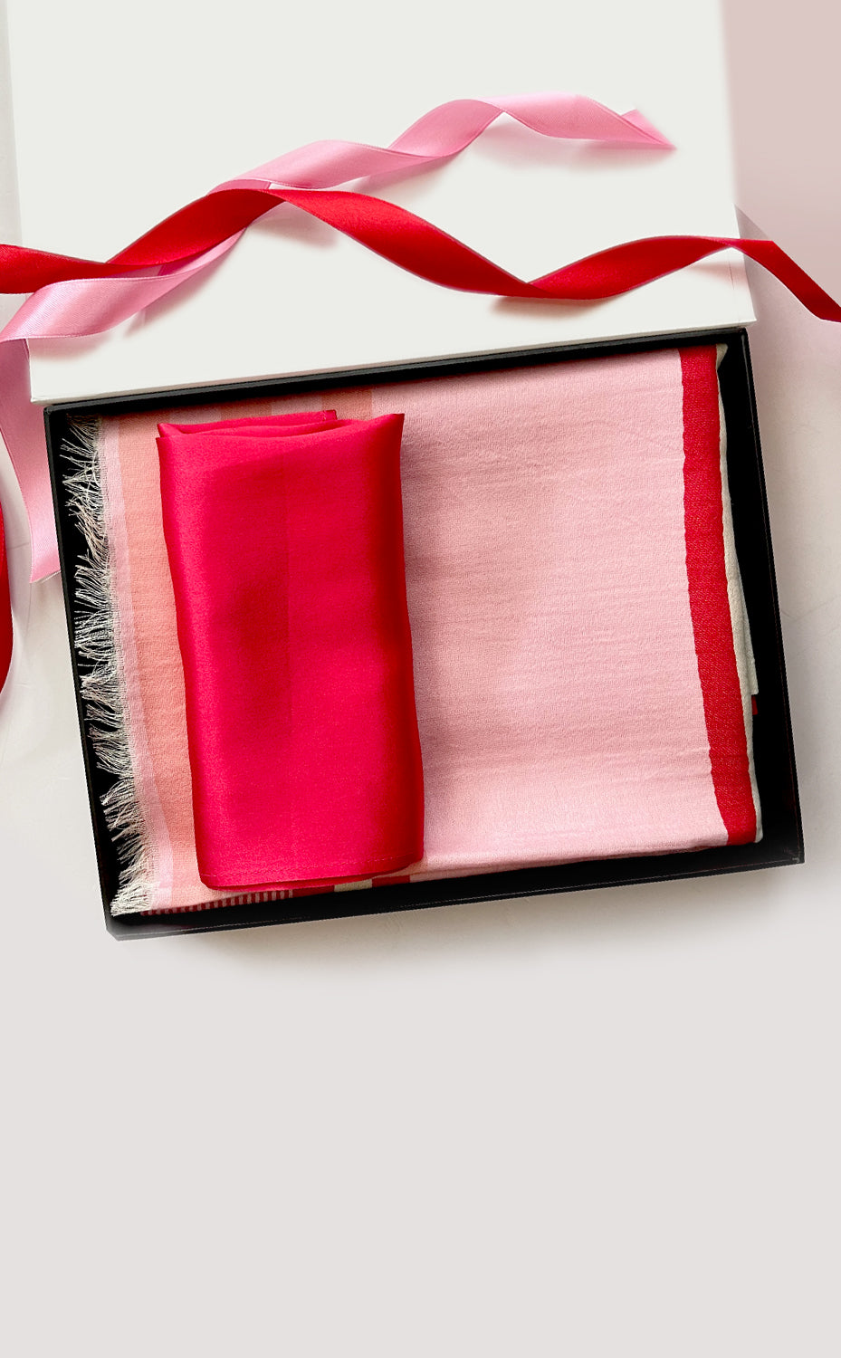 Regular price Rs. 3,100.00A refreshing summer gift set that includes a beautiful pink and red stripes stole and a red pocket square