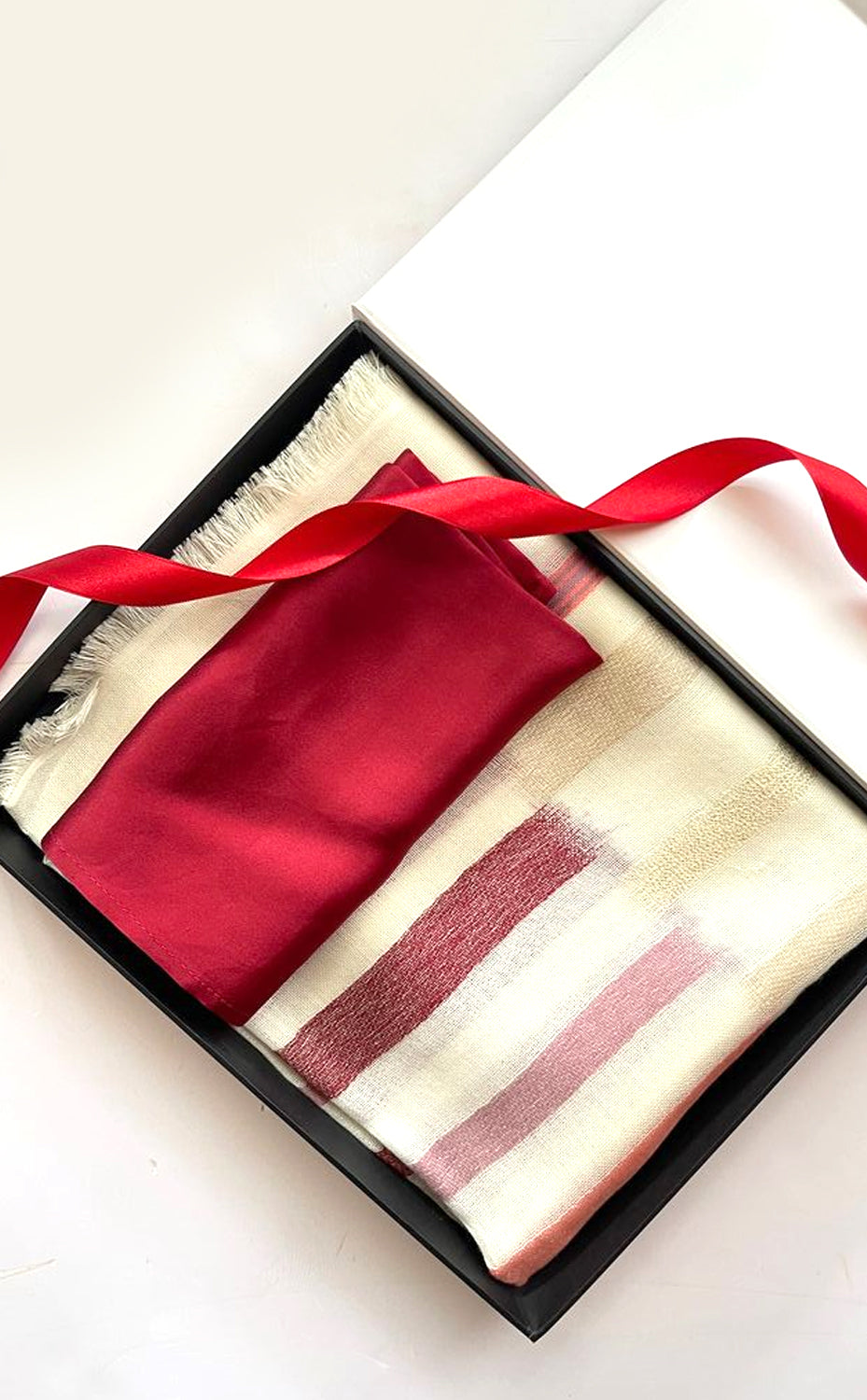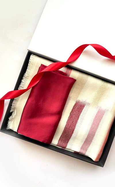 Regular price Rs. 3,500.00A refreshing summer gift set that includes a beautiful red and cream stripes stole and a crimson pocket square