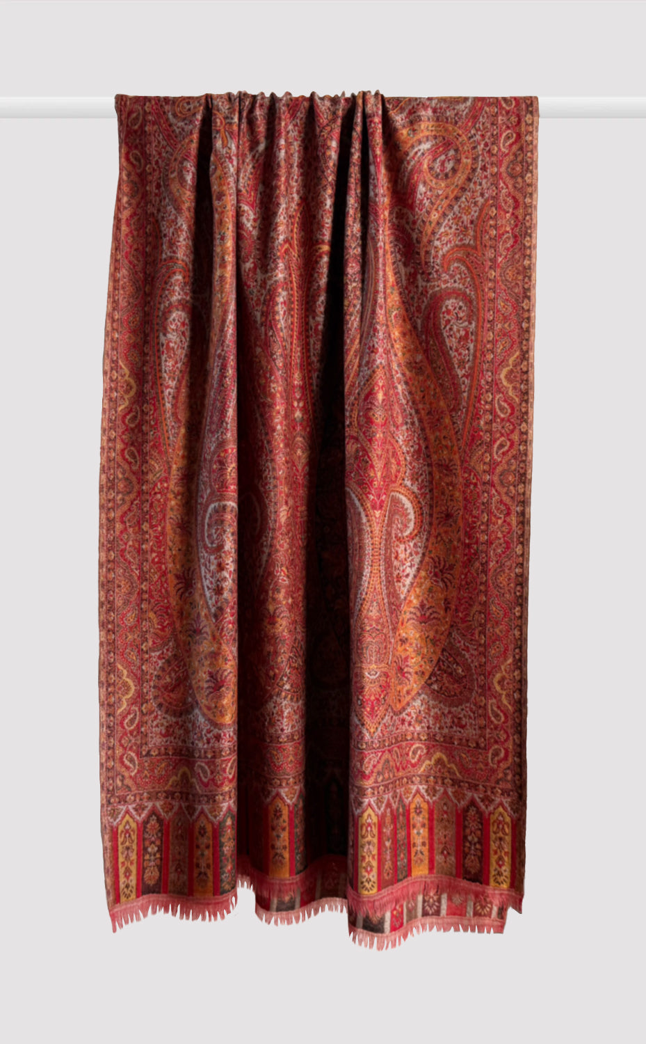 Regular price Rs. 10,500.00Our traditional kani shawl is a woven work of art made of colored threads to create intricate flowing motives. This piece features beautiful kani work along with motifs and delicate designs. Classic and timeless, a Kani is a must have for any wardrobe