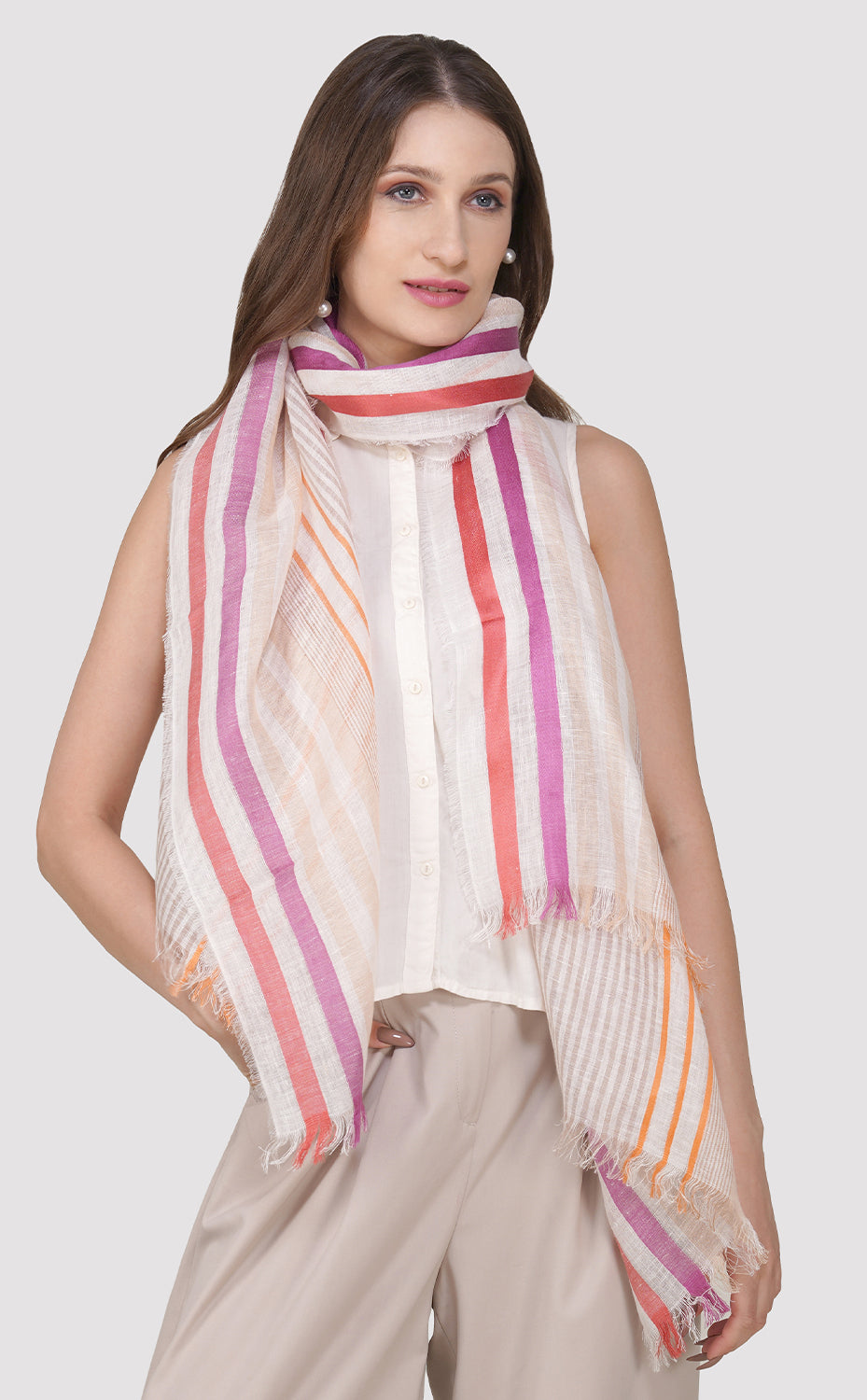 Pastel Stripe Linen Silk Stole