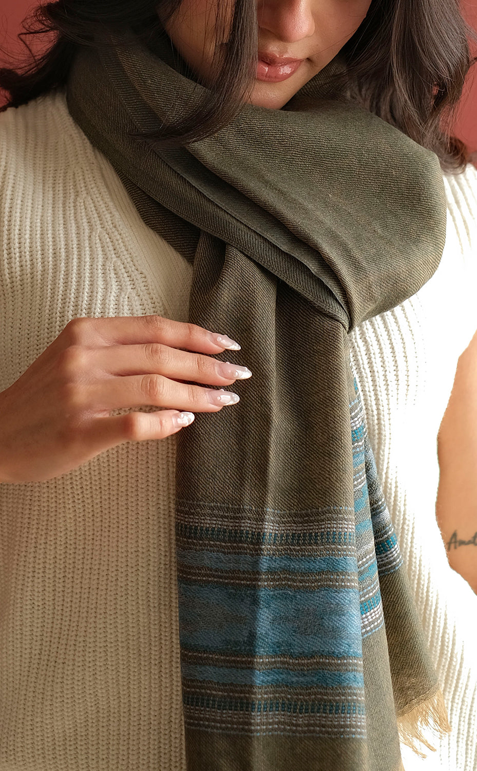 Our Kilim stoles our woven in soft & luxurious fine wool in classic winter shades and a vibrant kilim weave. A unique winter shawl for men or women