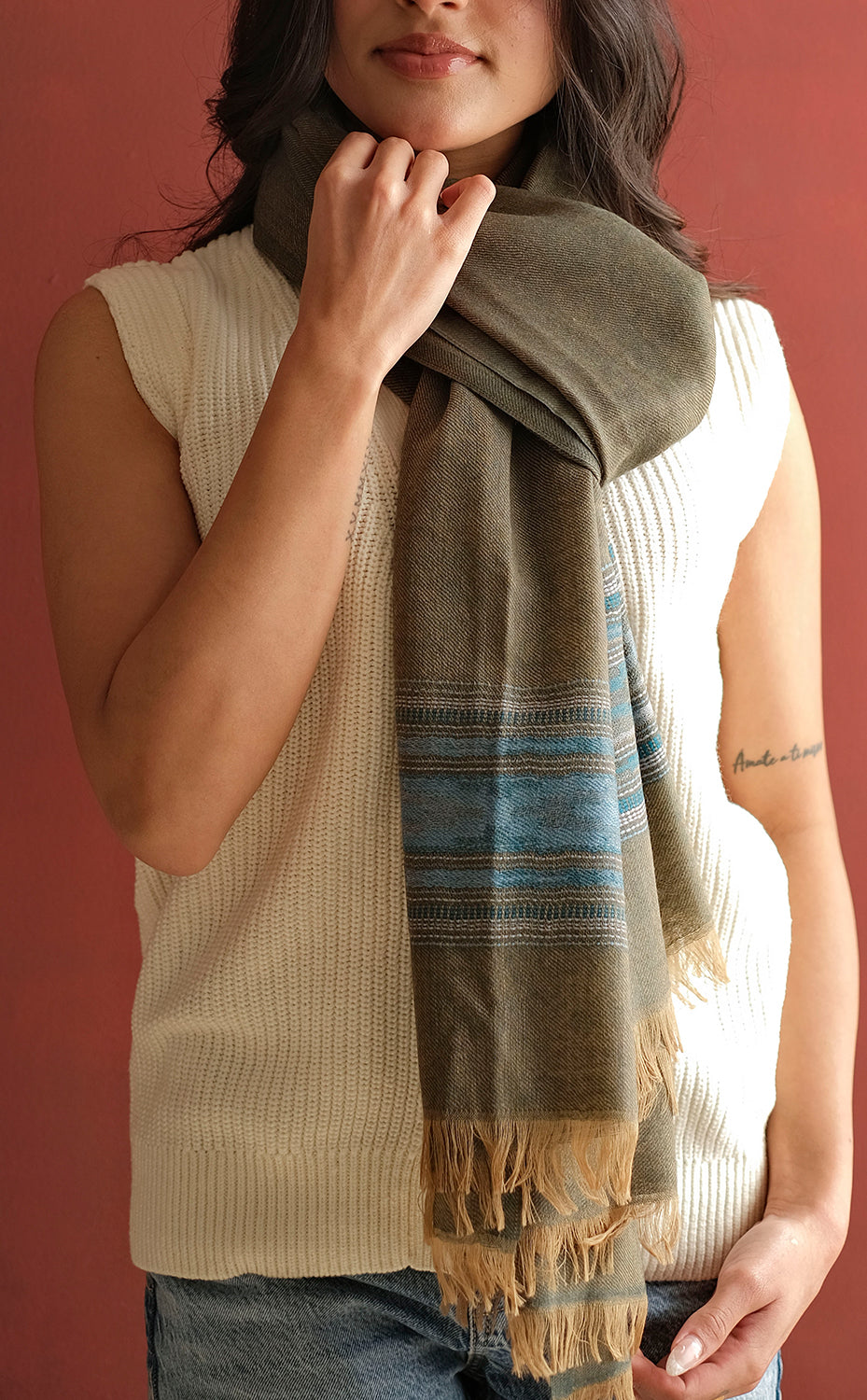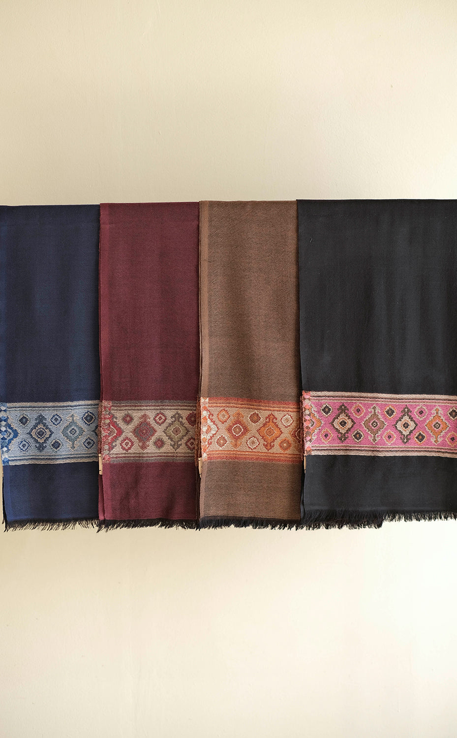 Our Kilim stoles our woven in soft & luxurious fine wool in classic winter shades and a vibrant kilim weave. A unique winter stole for men or women