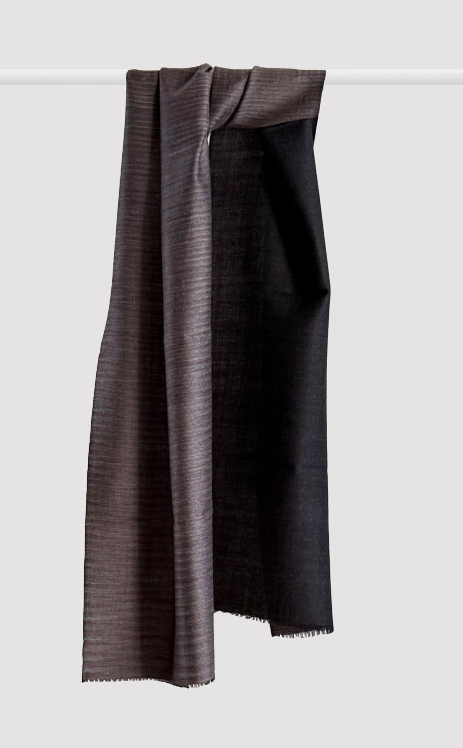 Our versatile muffler with soft, textured fabric provides warmth and comfort. The piece features beautiful solid red on one side and grey color ikat design on the other. Classic and timeless, this is a must have for any wardrobe
