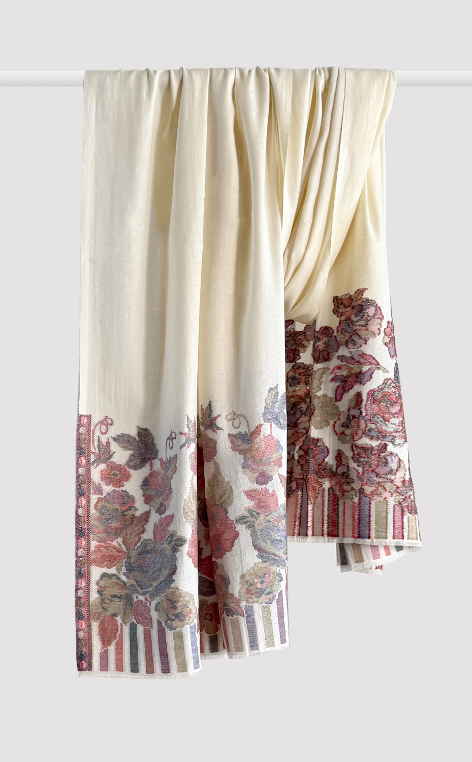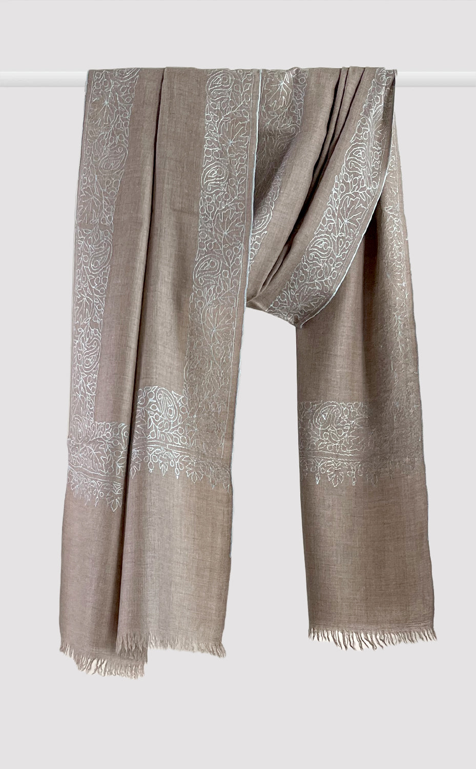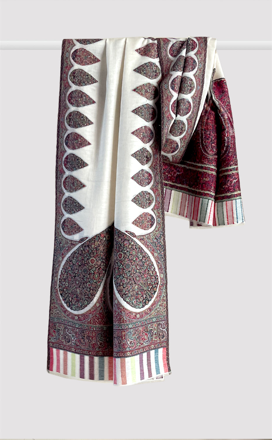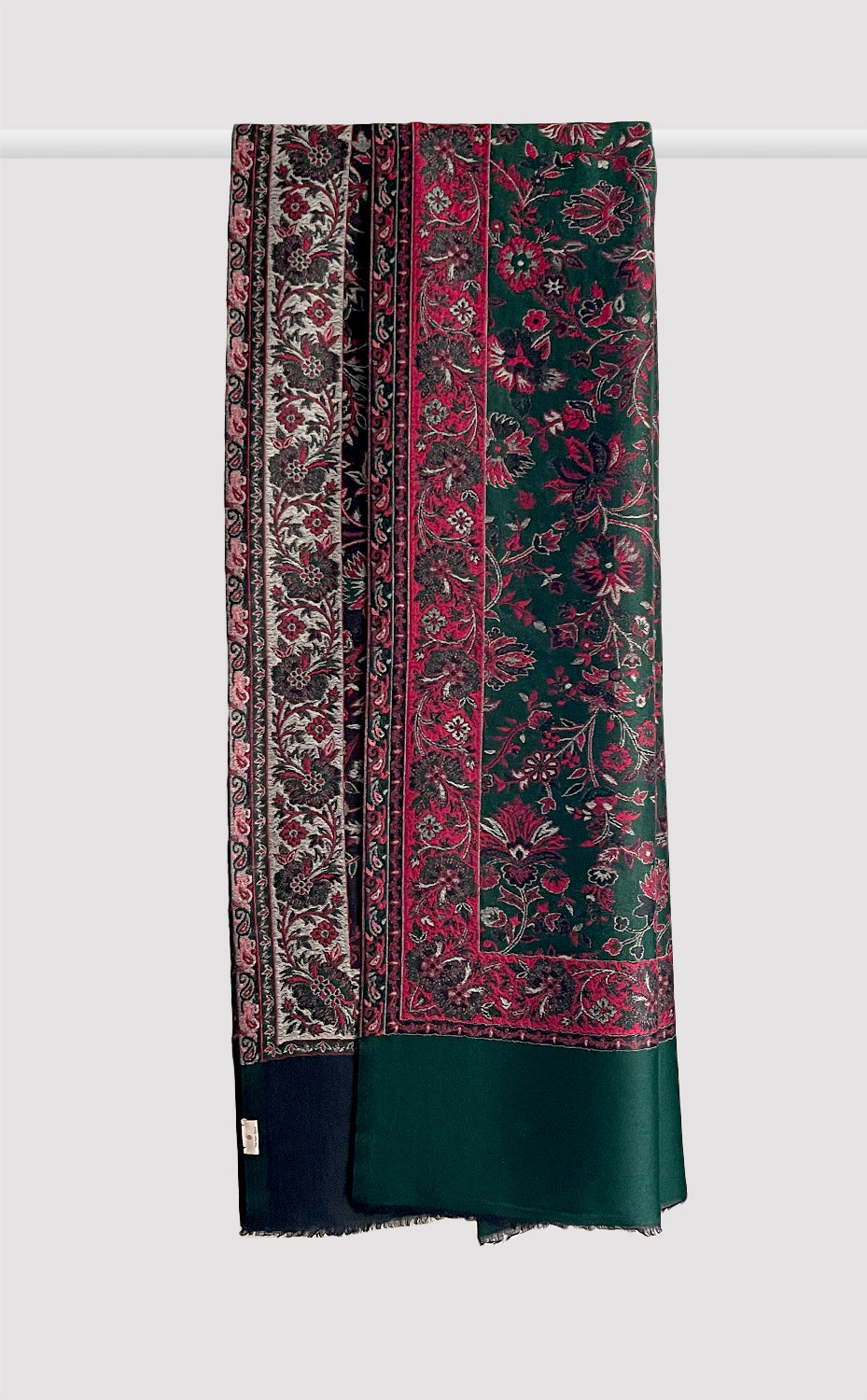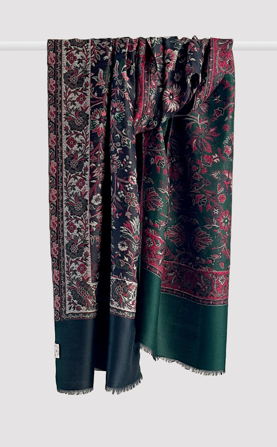 Regular price Rs. 34,000.00Made in Kashmir from natural & organically sourced wool pashmina, these stole are pure and magical. The ultra fine fabric paired with fine artisanal needle work and evergreen colors makes for an elegant stole for any occasion