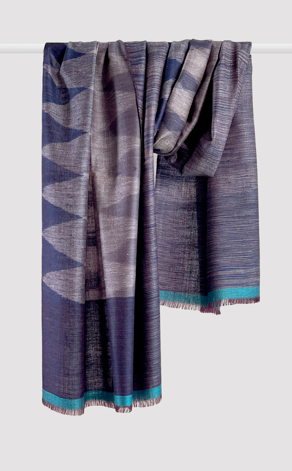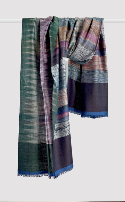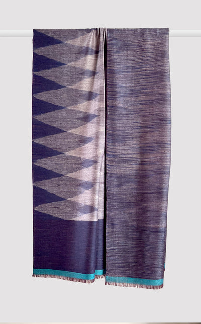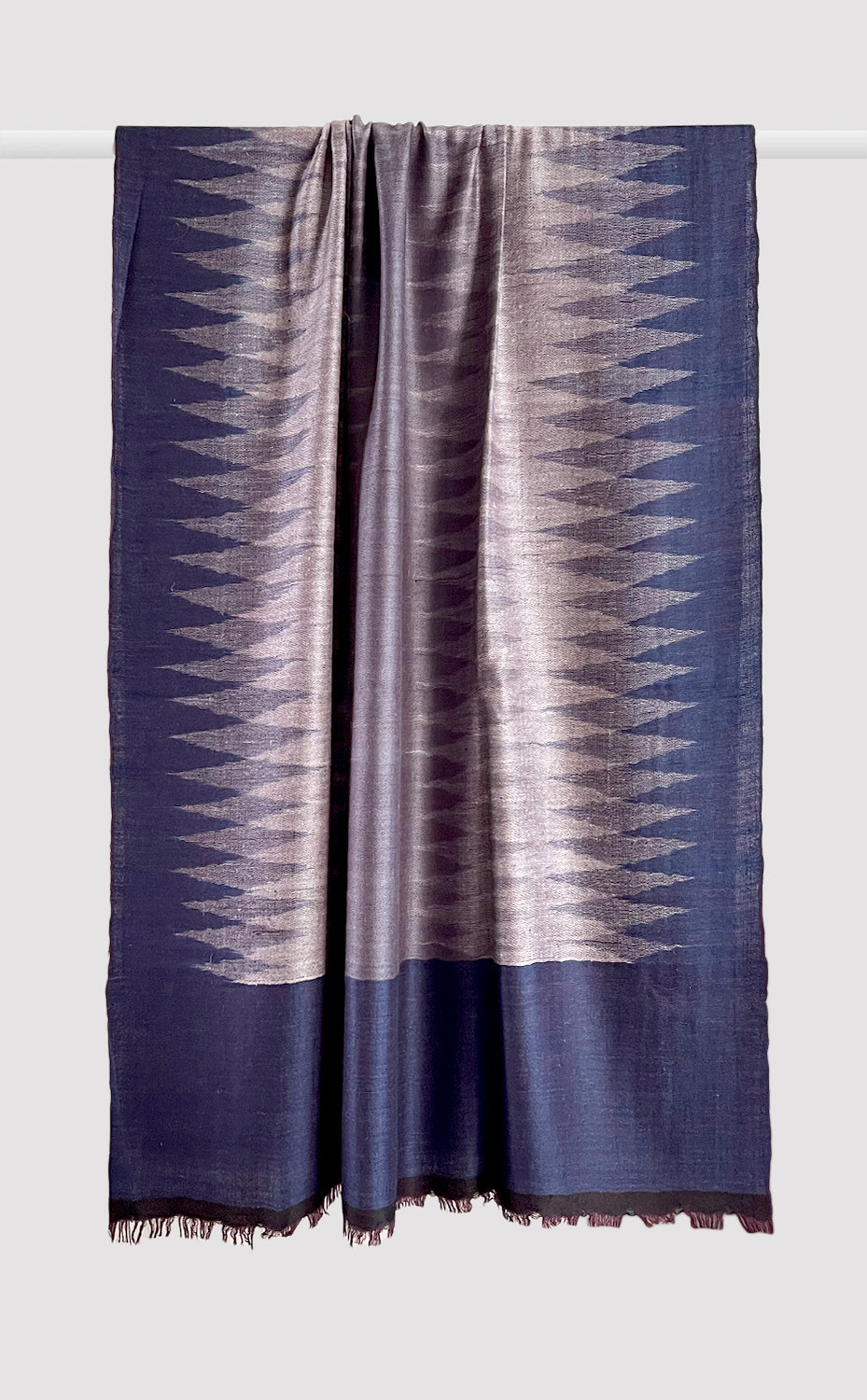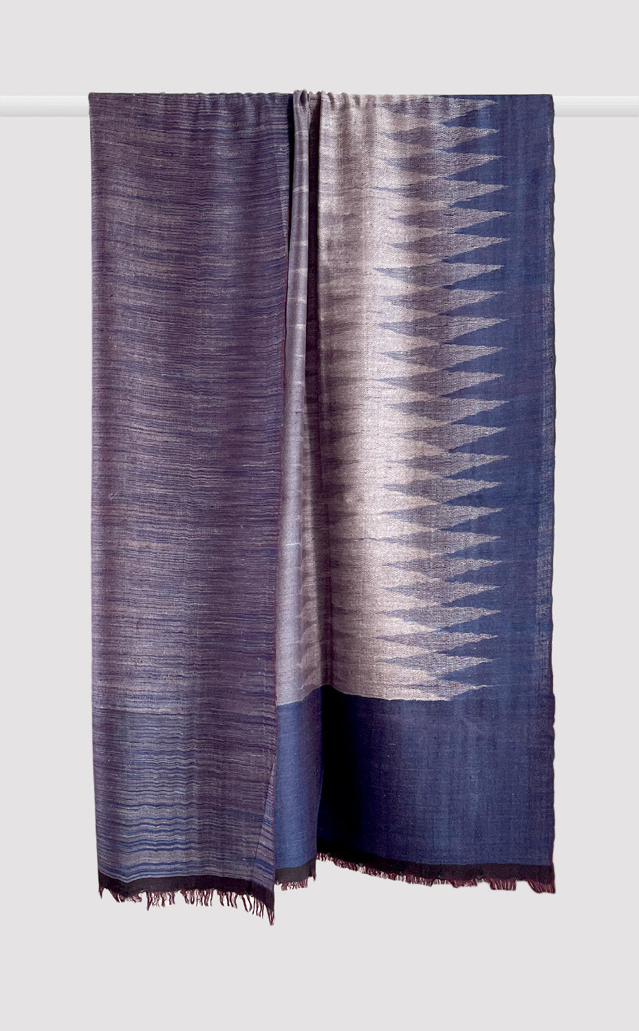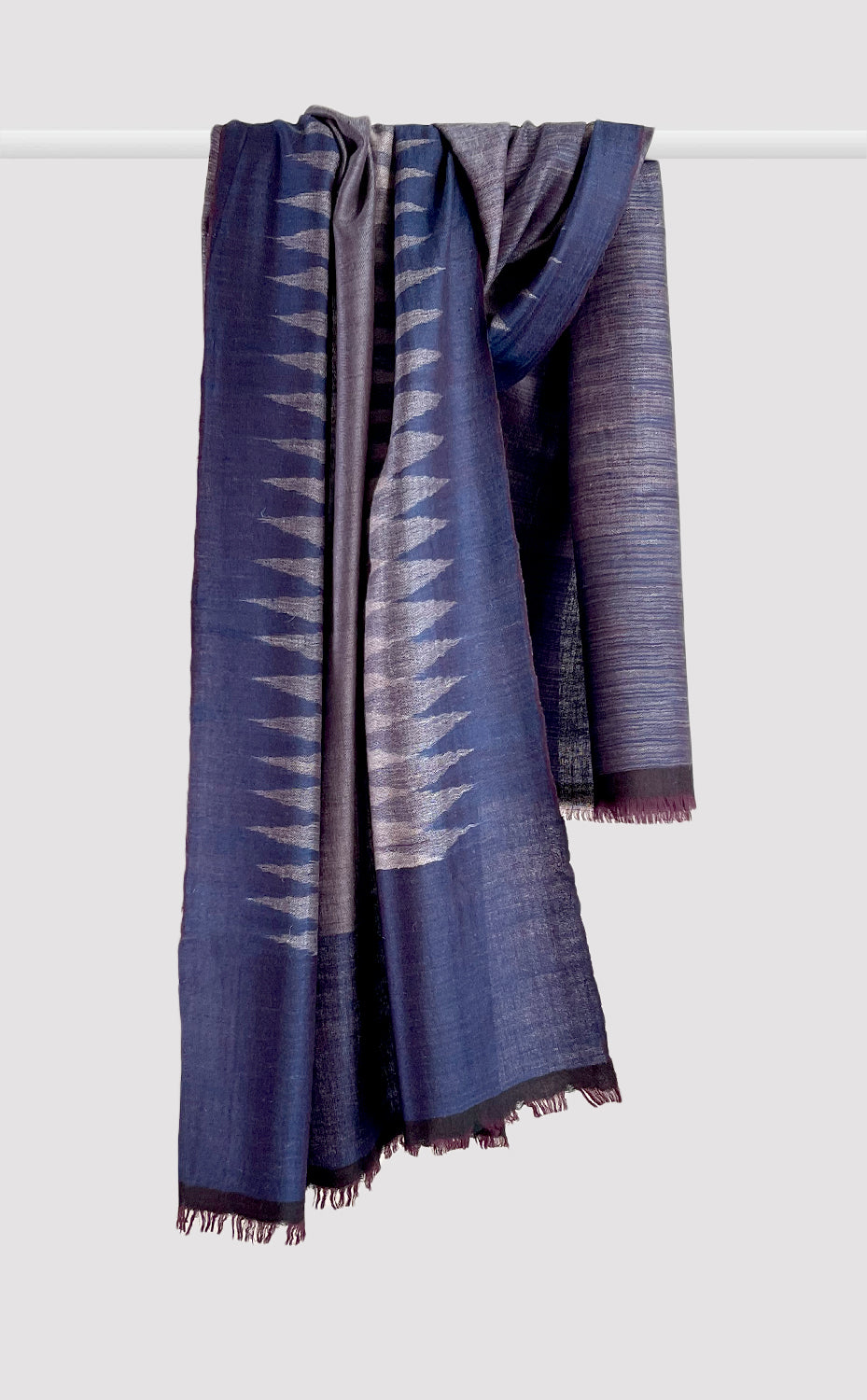 Regular price Rs. 60,000.00Made in Kashmir from natural & organically sourced wool pashmina, these shawls are pure and magical. The ultra fine fabric with purple and navy ikat stripes and reversible back makes for an elegant shawl for men & women. Each piece is handmade by our artisan in the heart of Kashmir