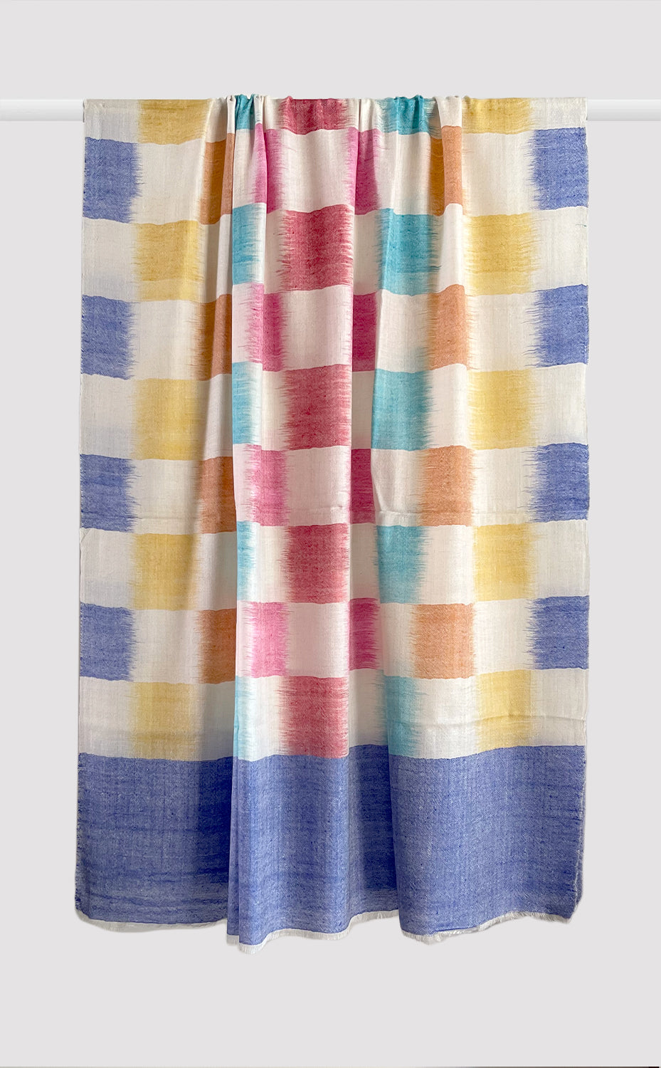 Regular price Rs. 25,000.00Made in Kashmir from natural & organically sourced wool pashmina, these shawls are pure and magical. The ultra fine fabric with checks ikat design makes for an elegant shawl for men & women. Each piece is handmade by our artisan in the heart of Kashmir