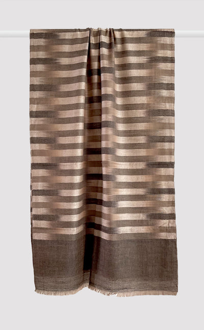 Regular price Rs. 4,500.00Luxurious pashmina wool stole in brown tone with subtle black stripes. Fine pashmina wool blended with silk gives it an ultra soft & cosy feel