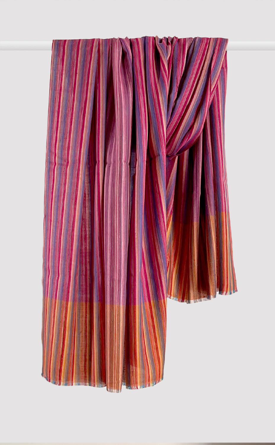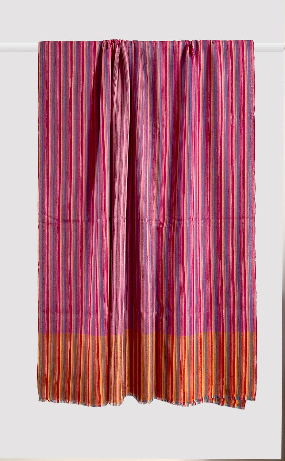 Regular price Rs. 24,000.00Made in Kashmir from natural & organically sourced wool pashmina, these shawls are pure and magical. The ultra fine fabric with vibrant pink multicolored stripes makes for an elegant shawl for men & women. Each piece is handmade by our artisan in the heart of Kashmir