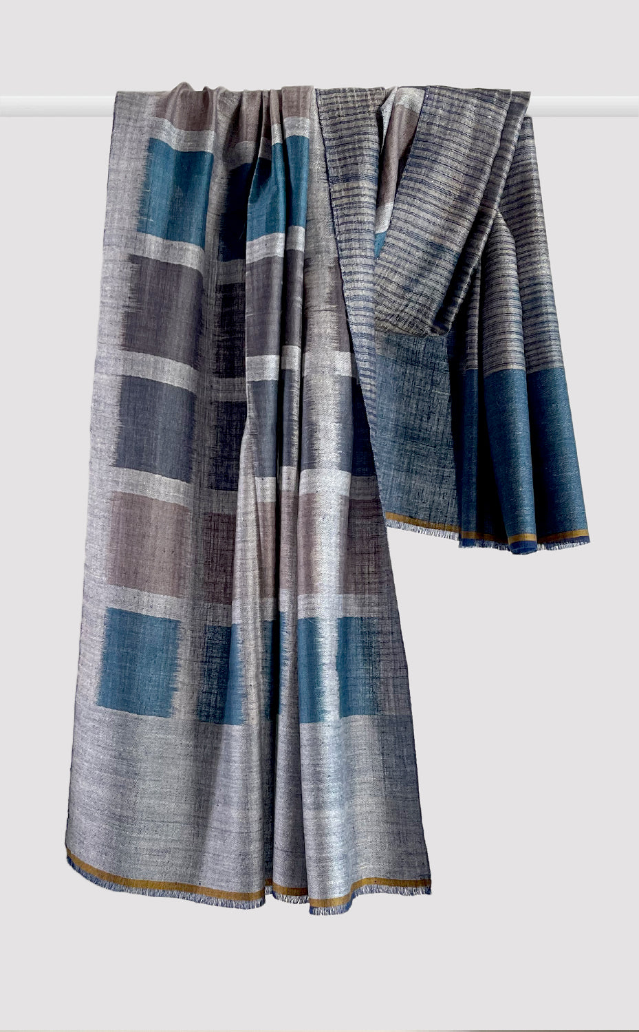 Regular price Rs. 21,000.00Made in Kashmir from natural & organically sourced wool pashmina, these shawls are pure and magical. The ultra fine fabric with an grey ikat hexagon weave makes for an elegant stole for men & women. Each shawl is handmade by our artisan in the heart of Kashmir