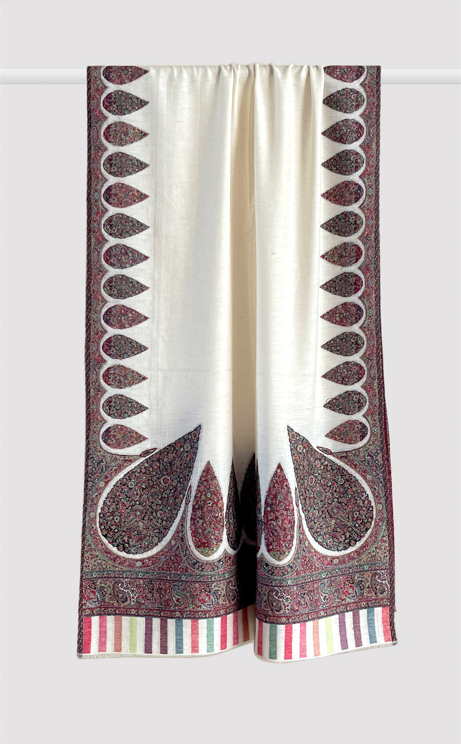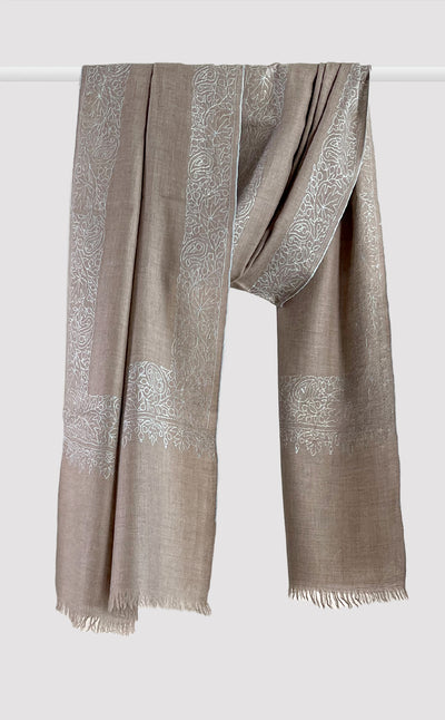 Regular price Rs. 36,000.00Made in Kashmir from natural & organically sourced wool pashmina, these stole are pure and magical. The ultra fine fabric paired with fine artisanal needle work makes for an elegant stole for any occasion