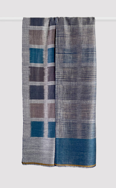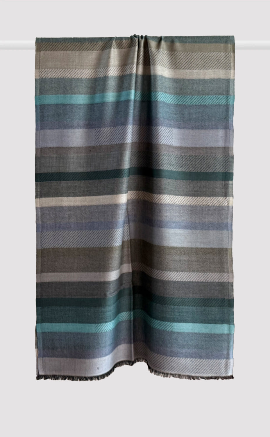Regular price Rs. 4,500.00Luxurious fine wool stole in grey with a contrasting slate coastal stripes. The fine wool blended with silk gives it an ultra soft & cosy feel