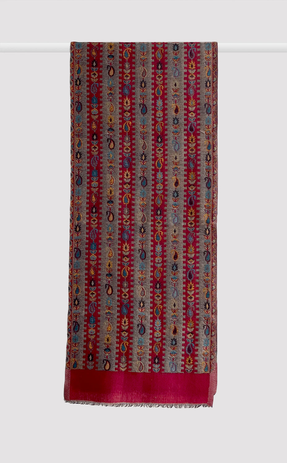 Regular price Rs. 11,500.00Made in Kashmir from natural & organically sourced wool pashmina, these stoles are pure and magical. The ultra fine fabric with ruby stripes makes for an elegant stole for men & women