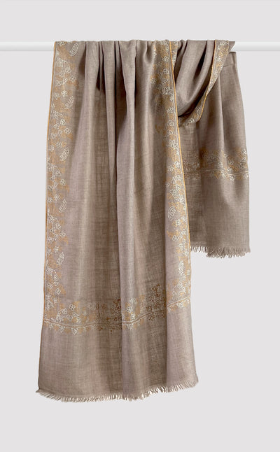 Pashmina Hand-Embroidered Golden Meadow Stole