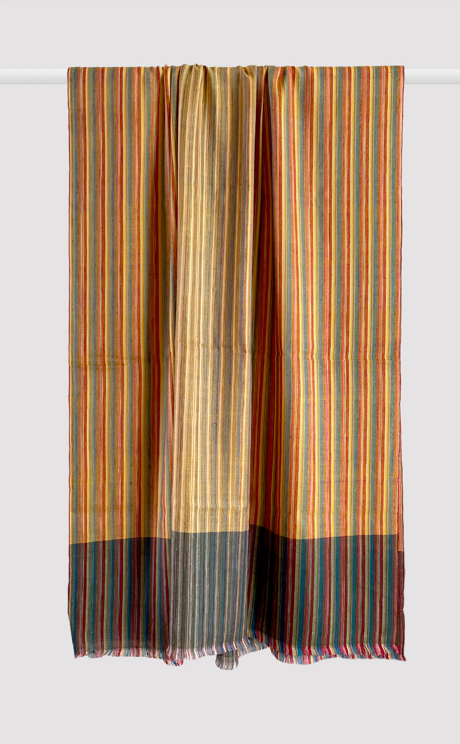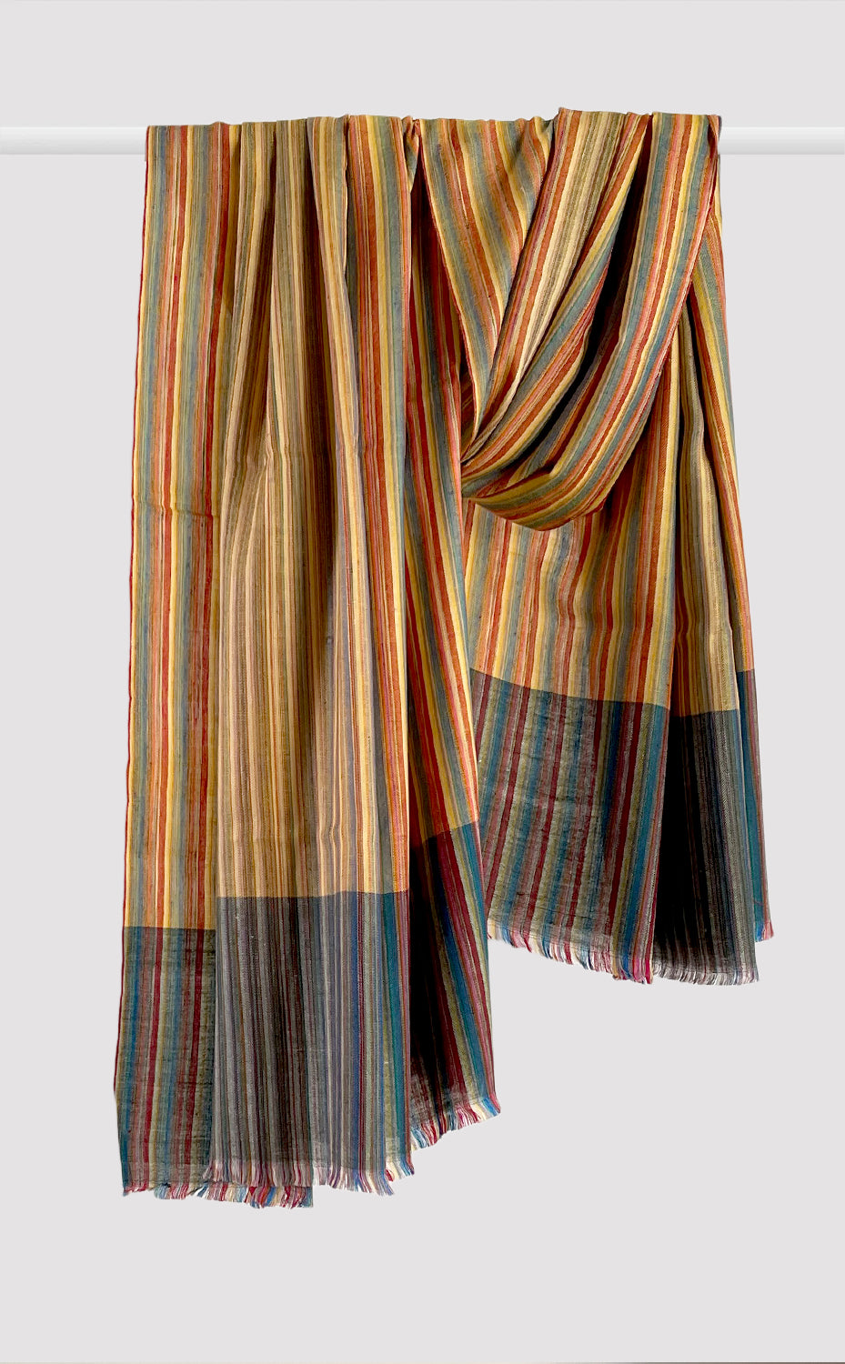 Regular price Rs. 22,000.00Made in Kashmir from natural & organically sourced wool pashmina, these shawls are pure and magical. The ultra fine fabric with vibrant yellow and multicolored stripes makes for an elegant shawl for men & women. Each piece is handmade by our artisan in the heart of Kashmir