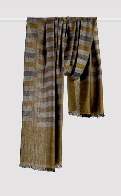 Regular price Rs. 18,000.00Made in Kashmir from natural & organically sourced wool pashmina, these stole are pure and magical. The ultra fine fabric with brown and moss ikat stripes and makes for an elegant stole for men & women. Each piece is handmade by our artisan in the heart of Kashmir