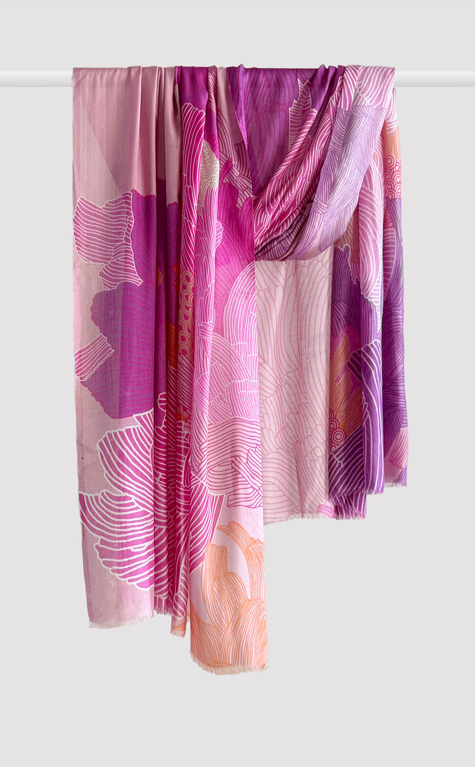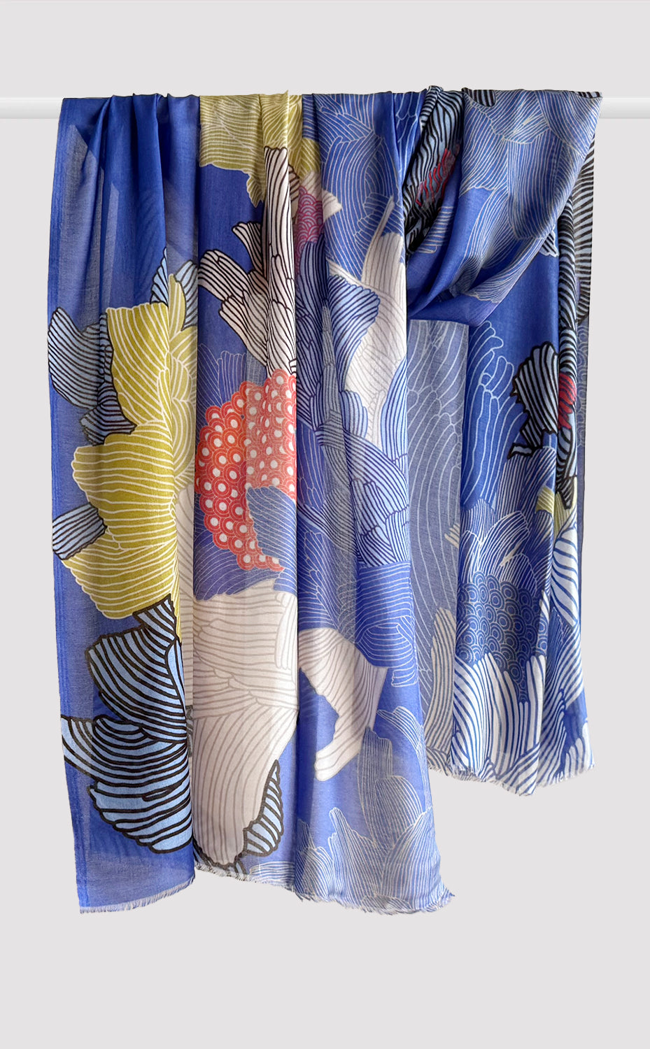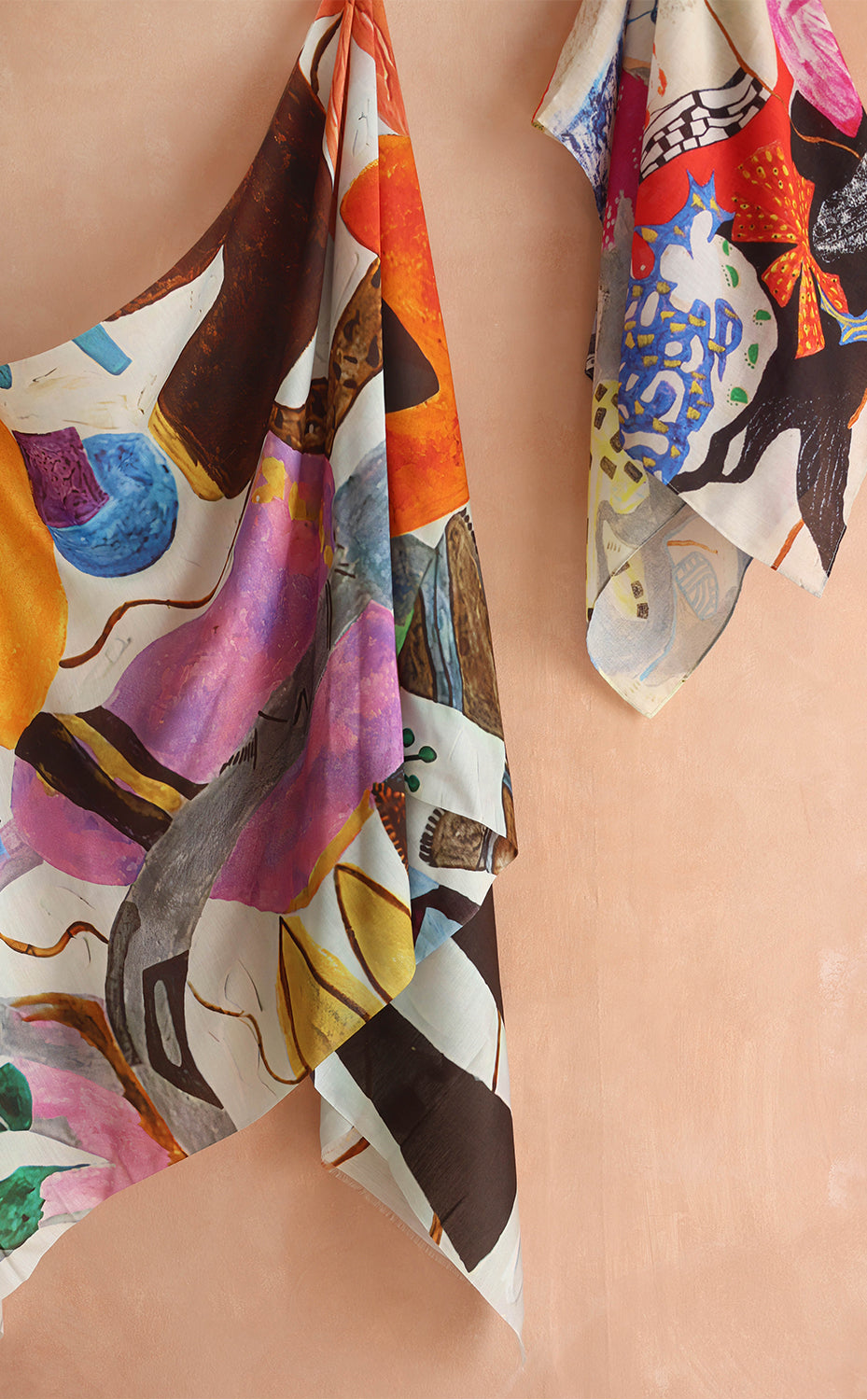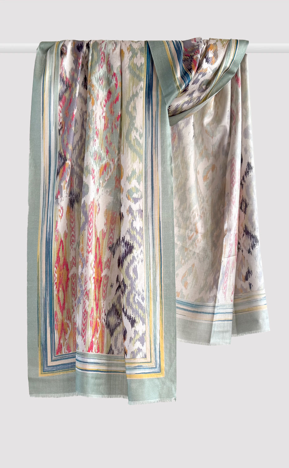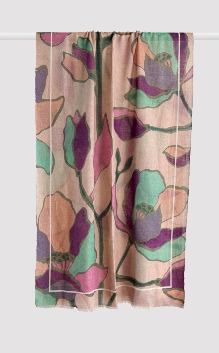 digitally printed rectangle foulards (stole oblong) in luxurious fabrics like silk wool, modal cashmere & modal silk.