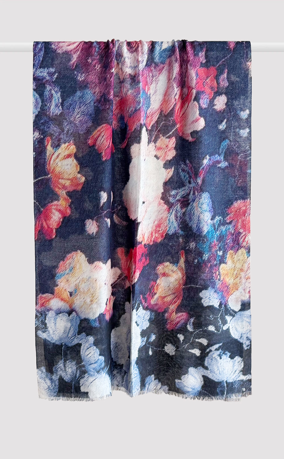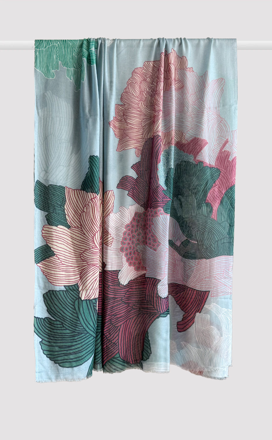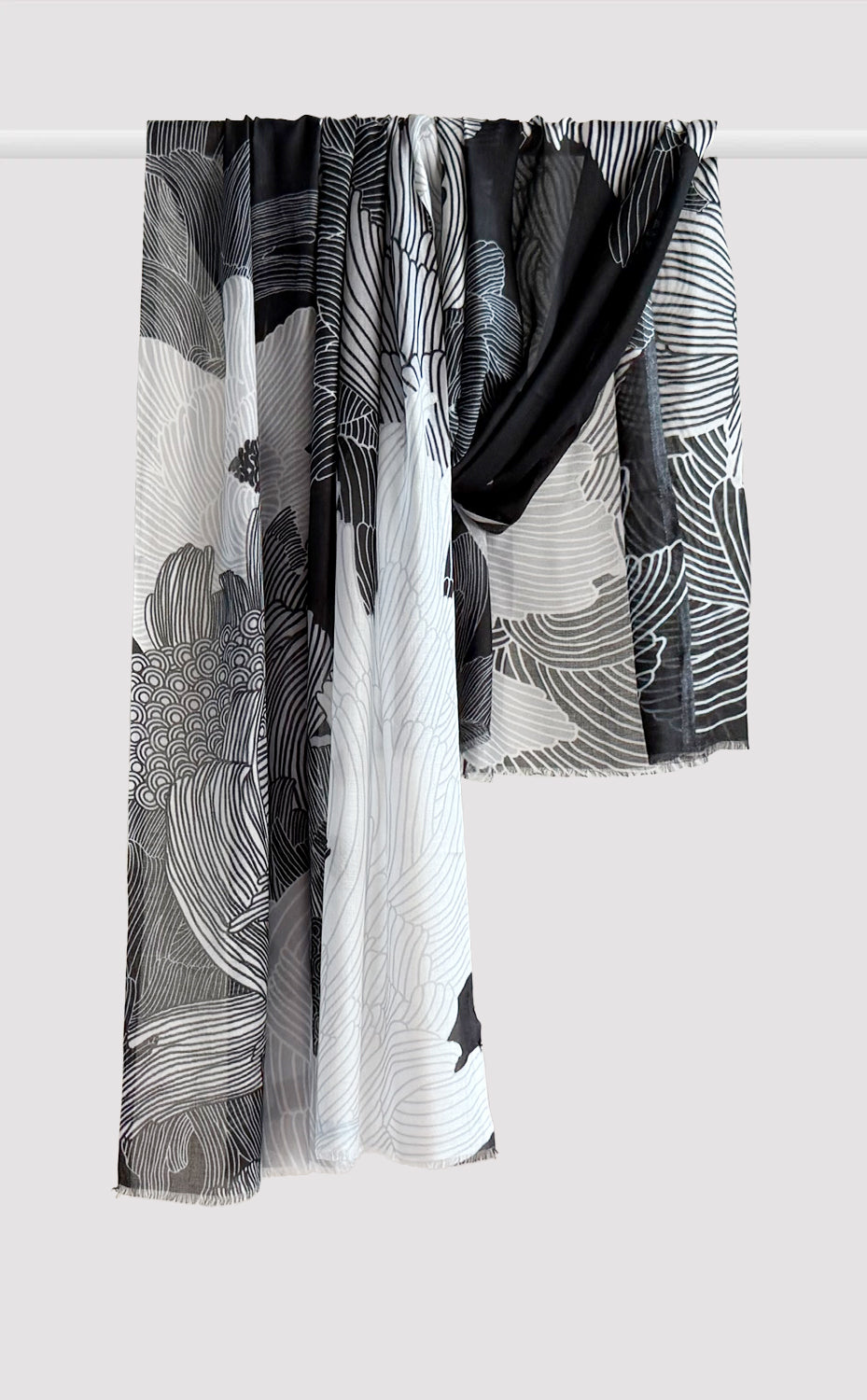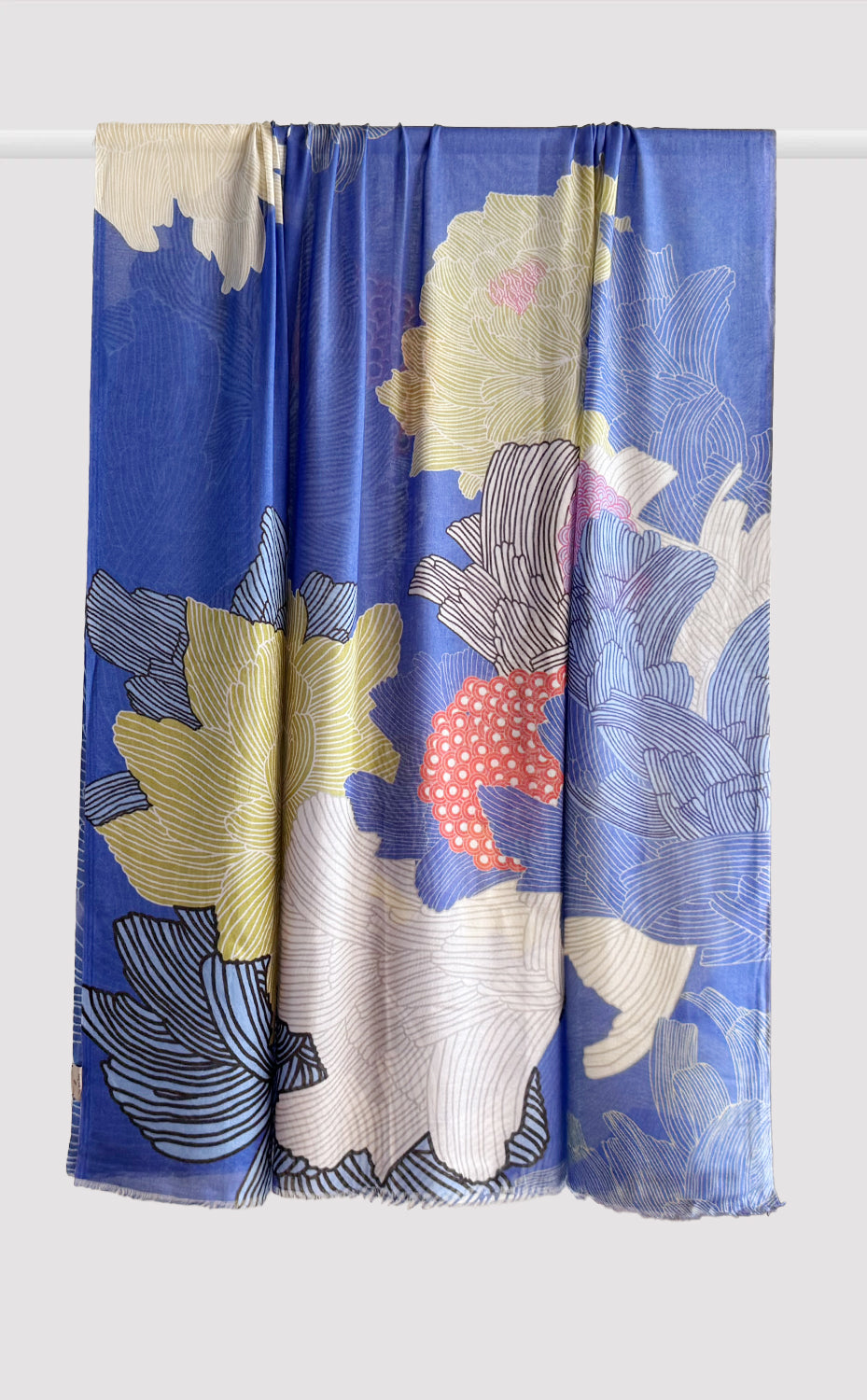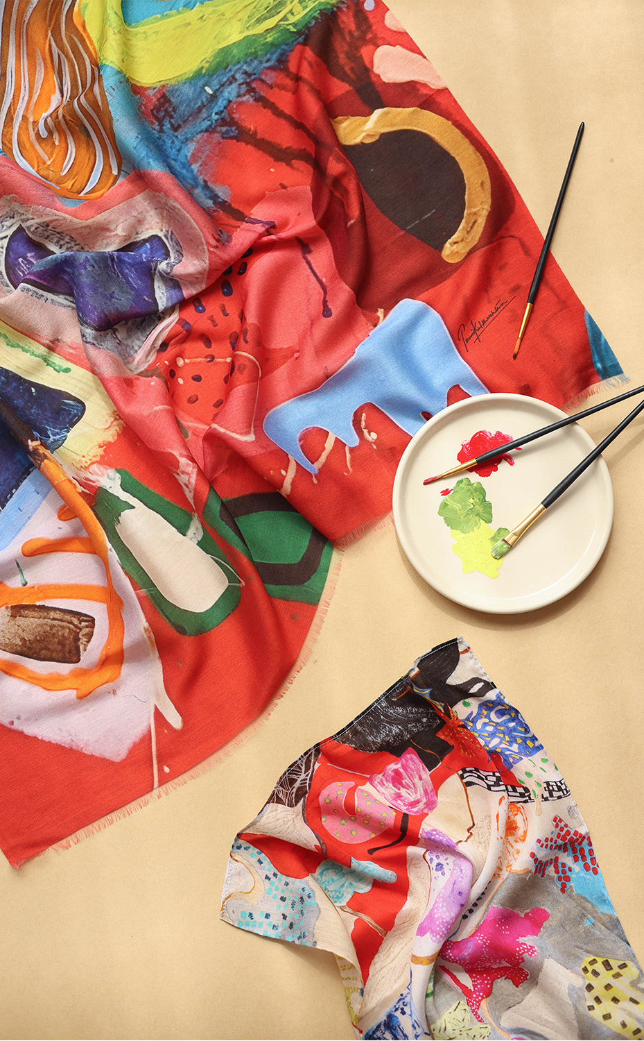 digitally printed rectangle foulards (stole oblong) in luxurious fabrics like silk wool, modal cashmere & modal silk.