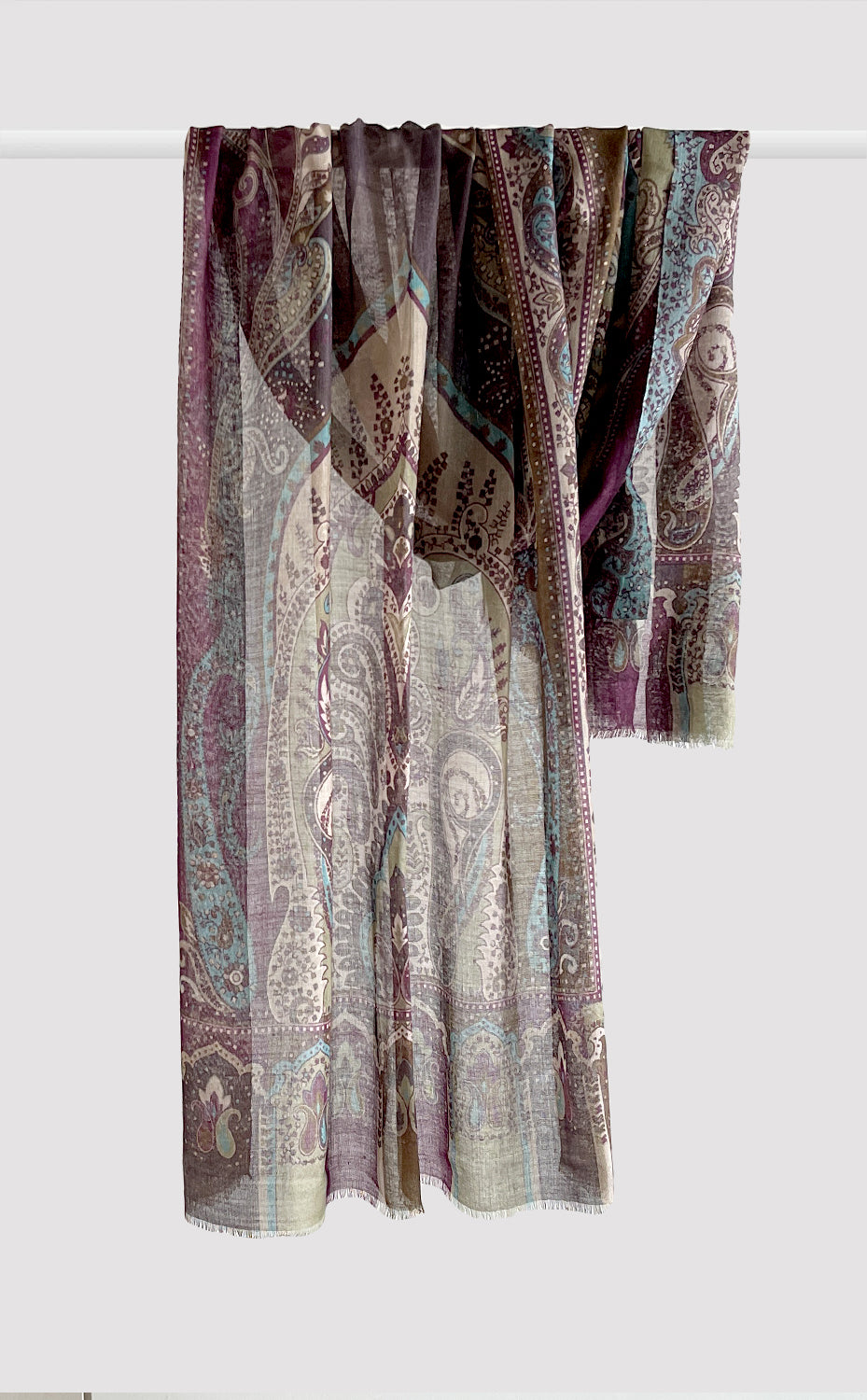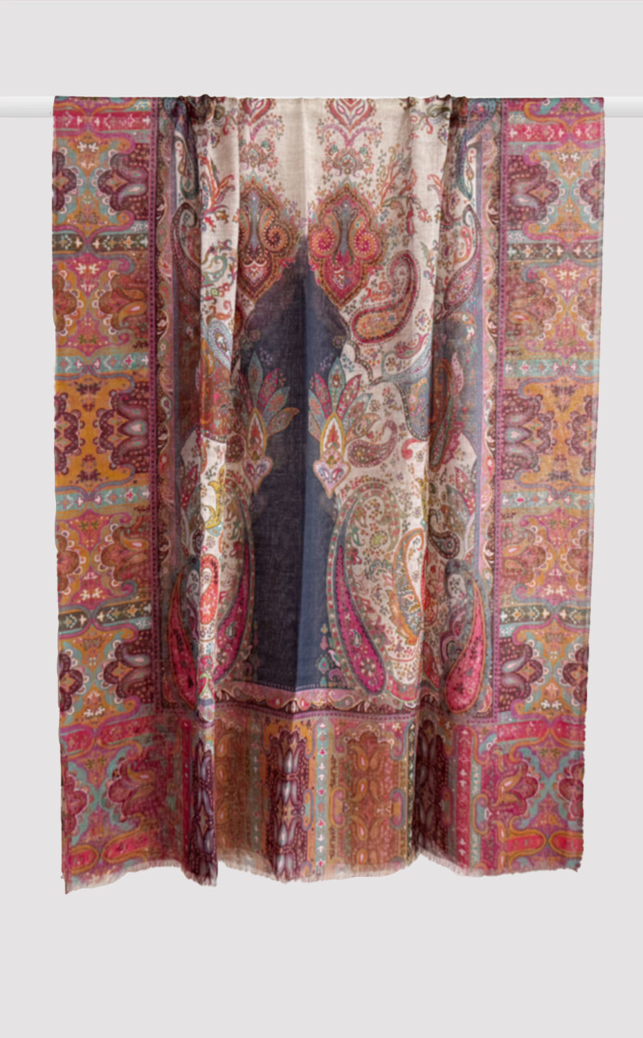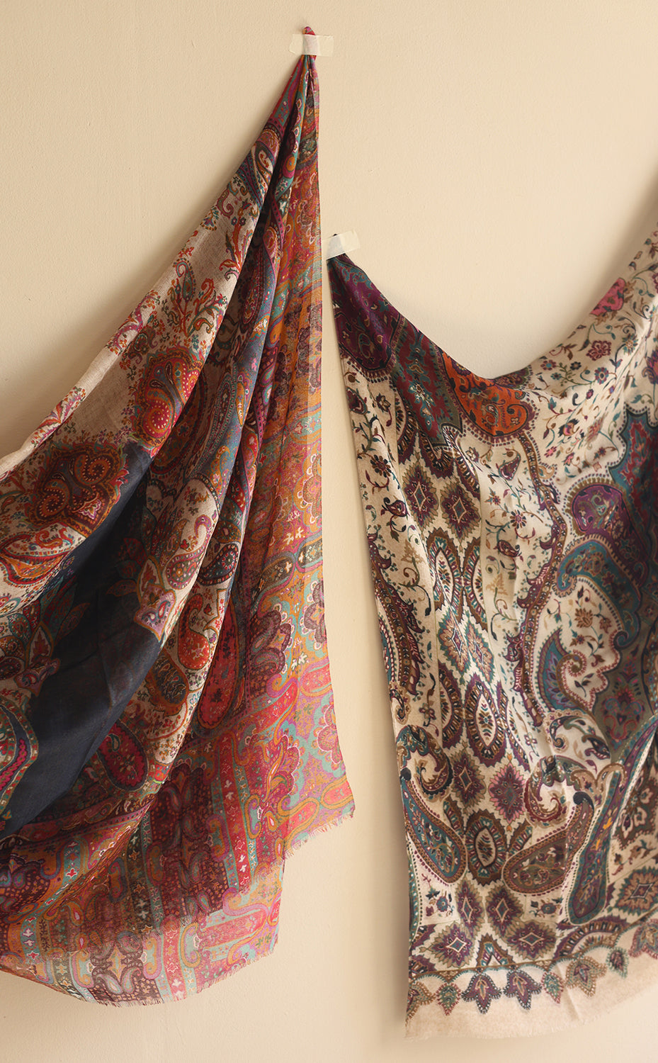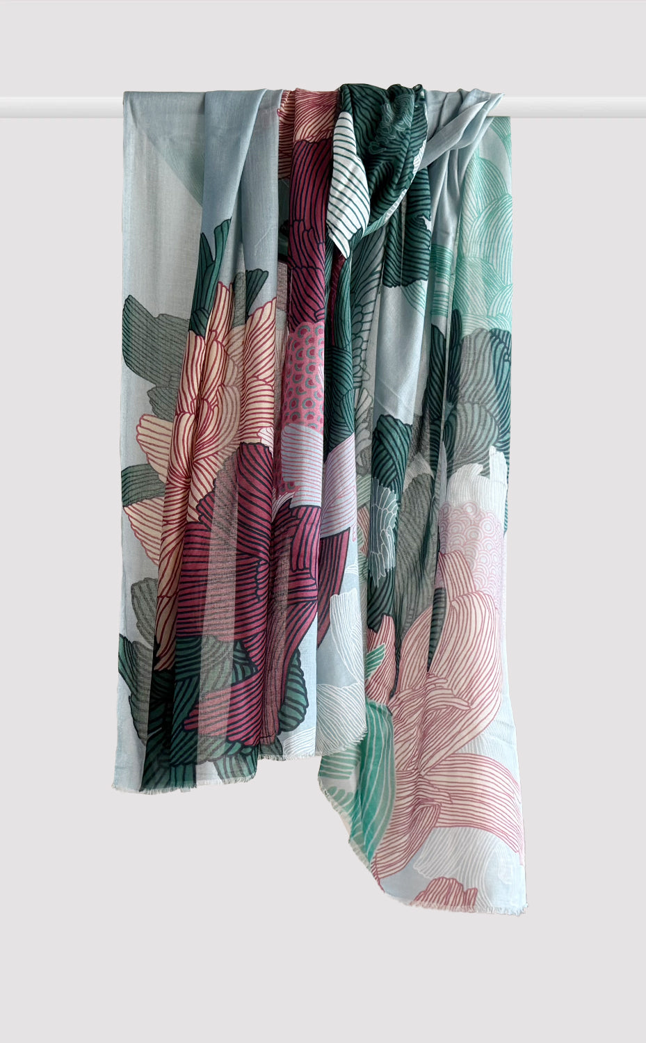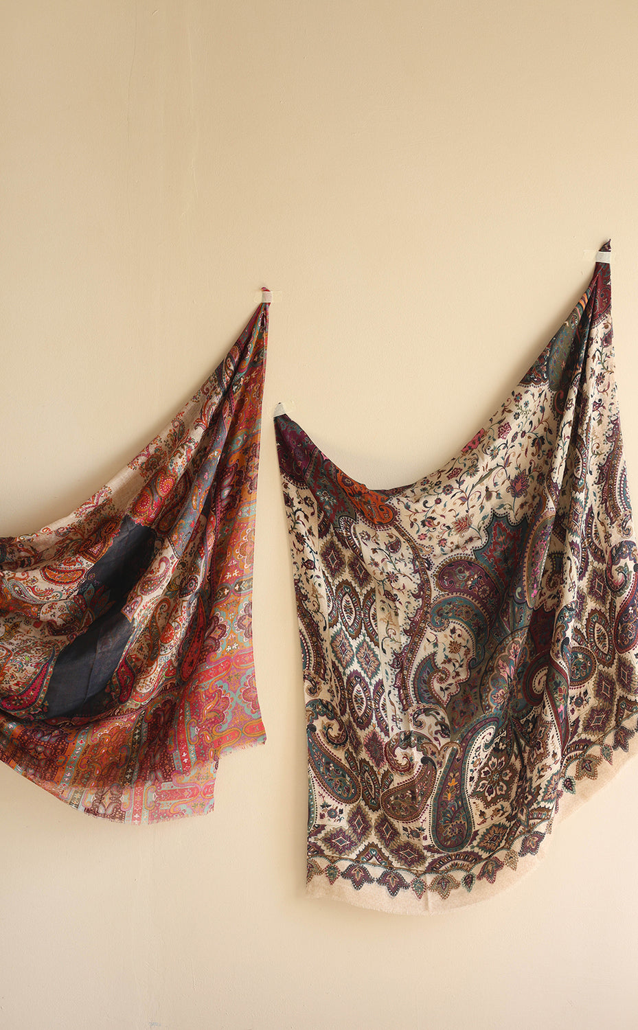 digitally printed rectangle foulards (stole oblong) in luxurious fabrics like silk wool, modal cashmere & modal silk.