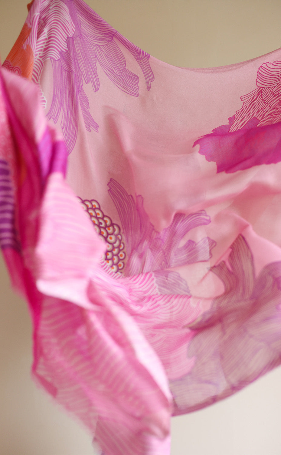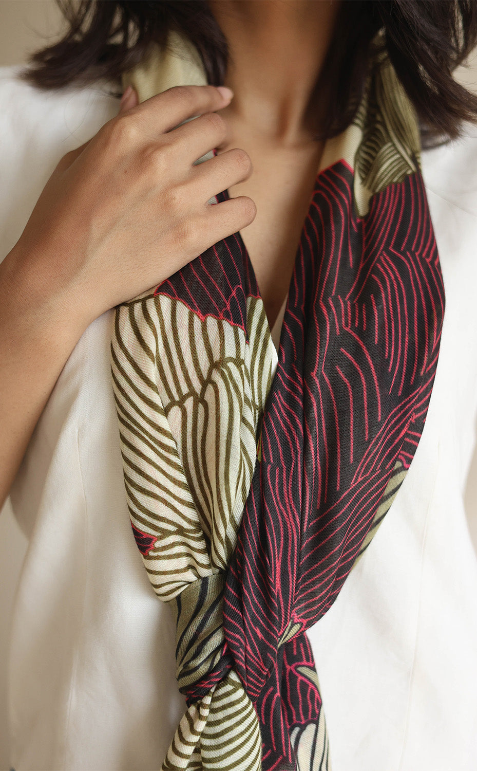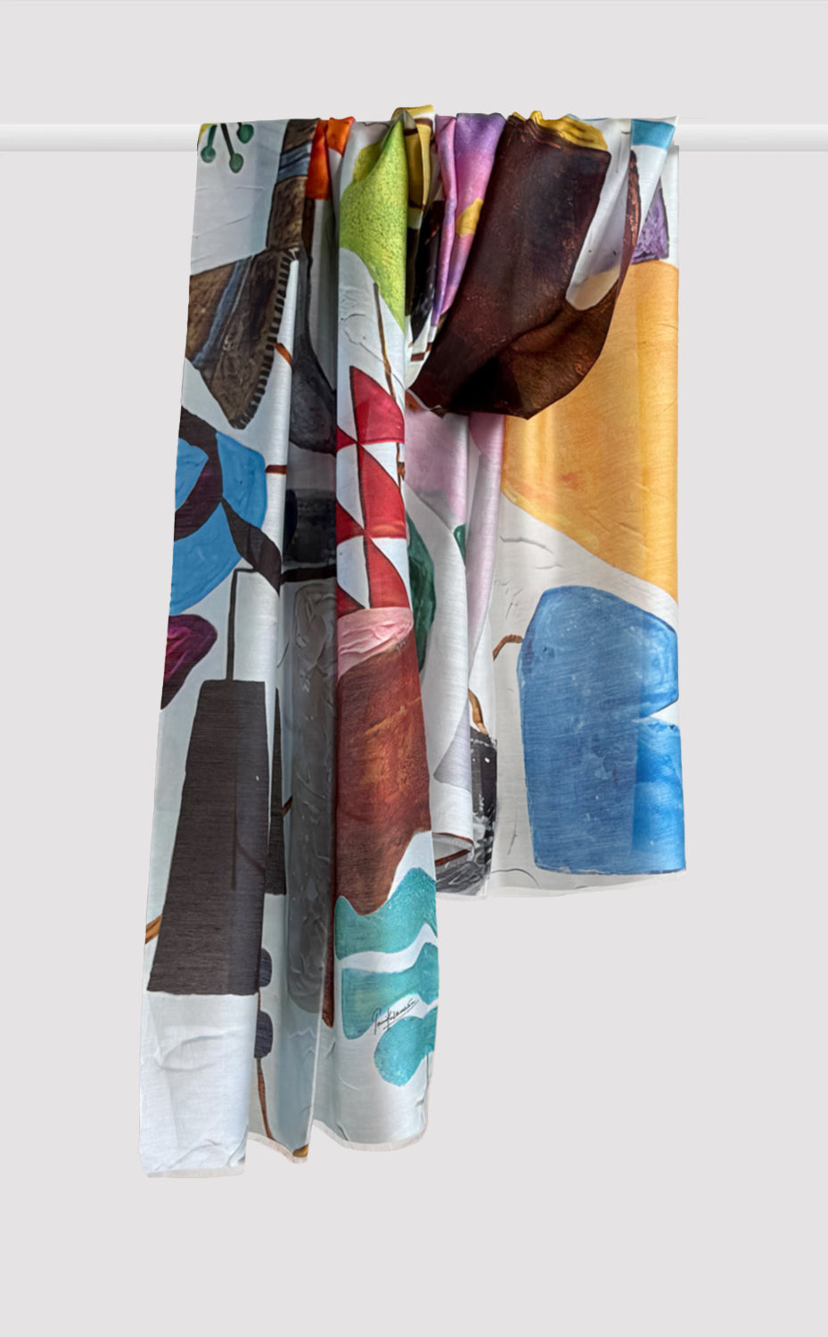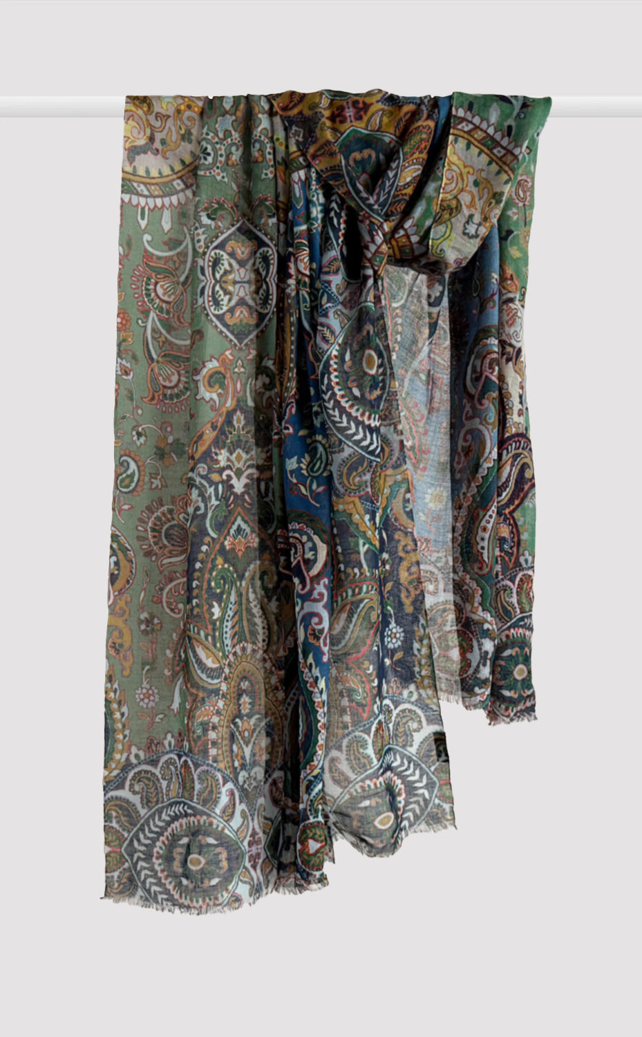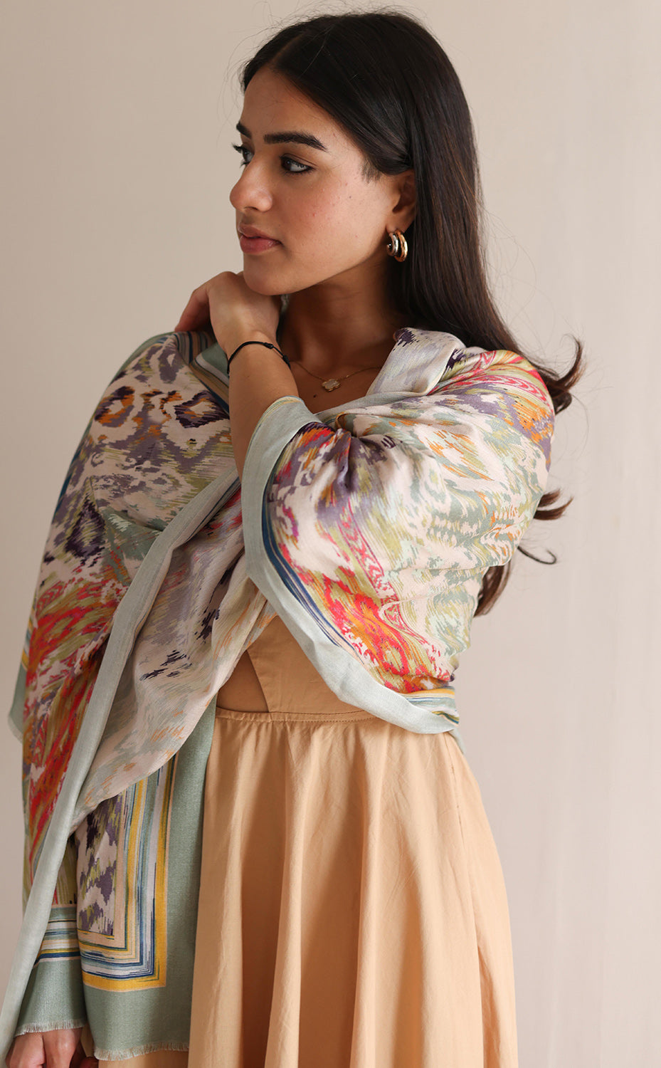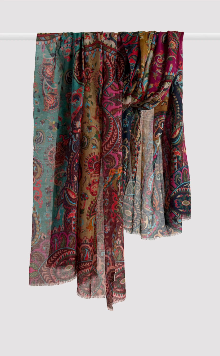 digitally printed rectangle foulards (stole oblong) in luxurious fabrics like silk wool, modal cashmere & modal silk.