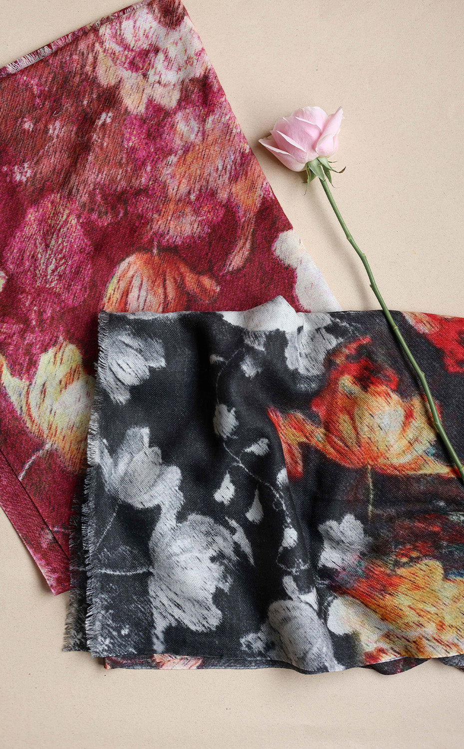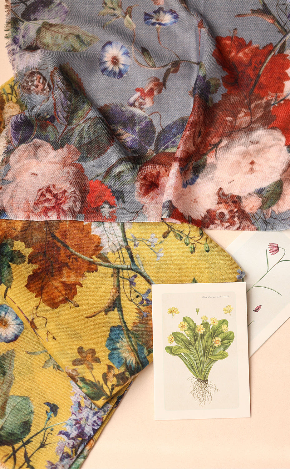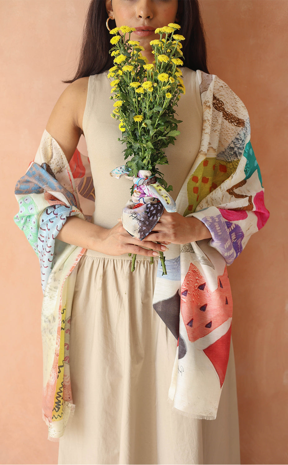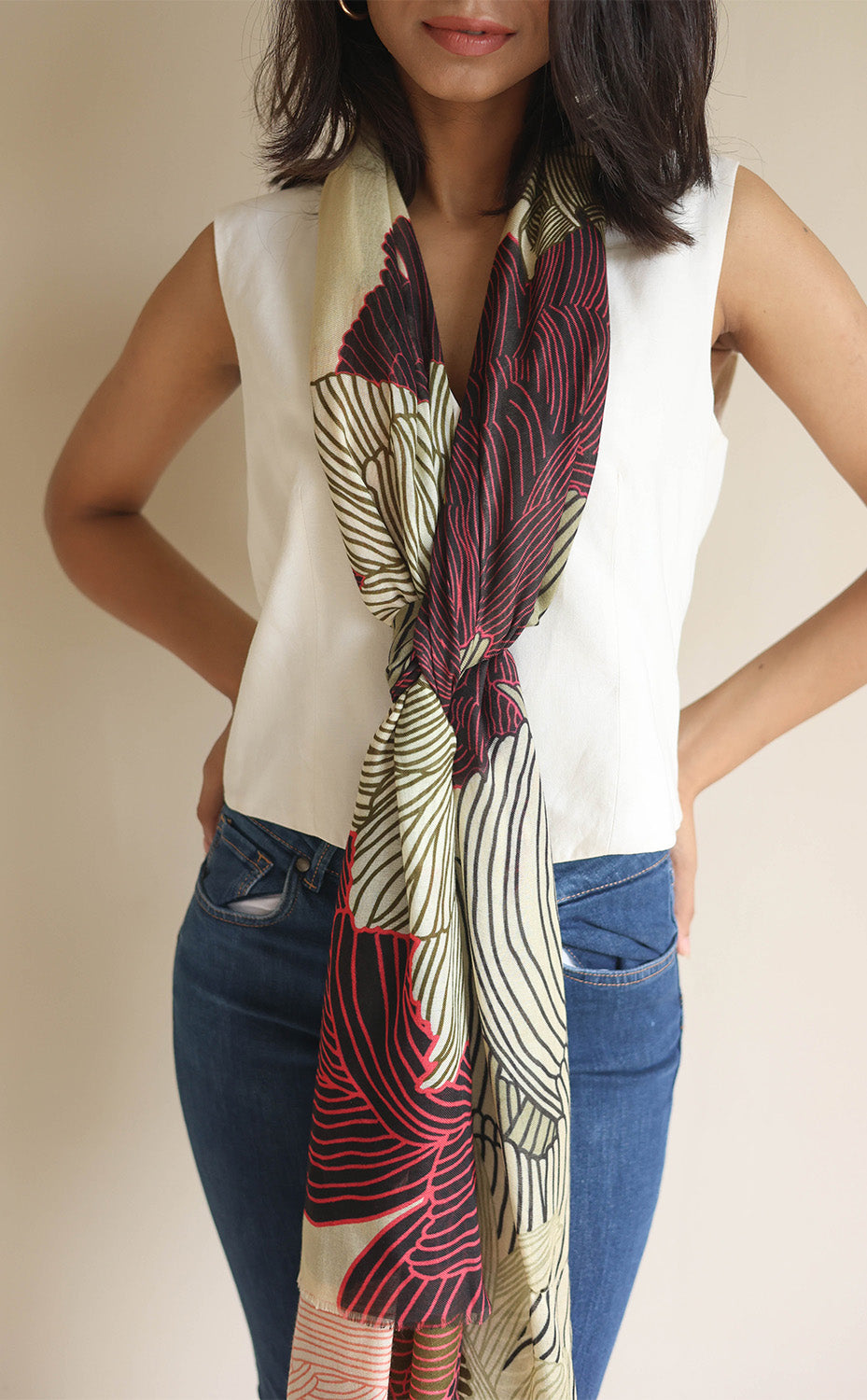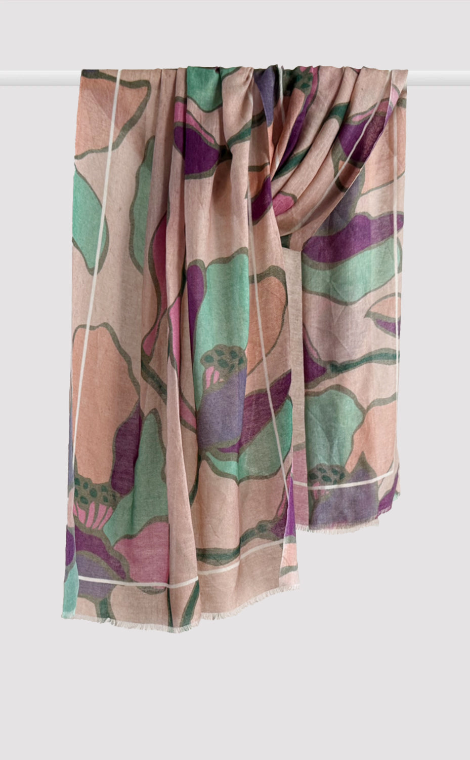 digitally printed rectangle foulards (stole oblong) in luxurious fabrics like silk wool, modal cashmere & modal silk.