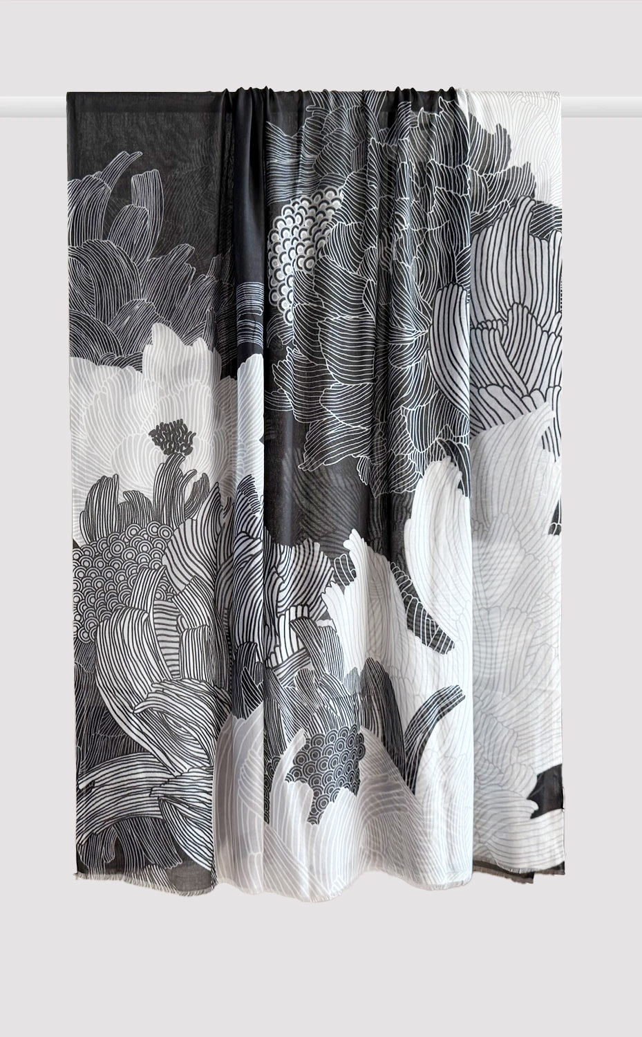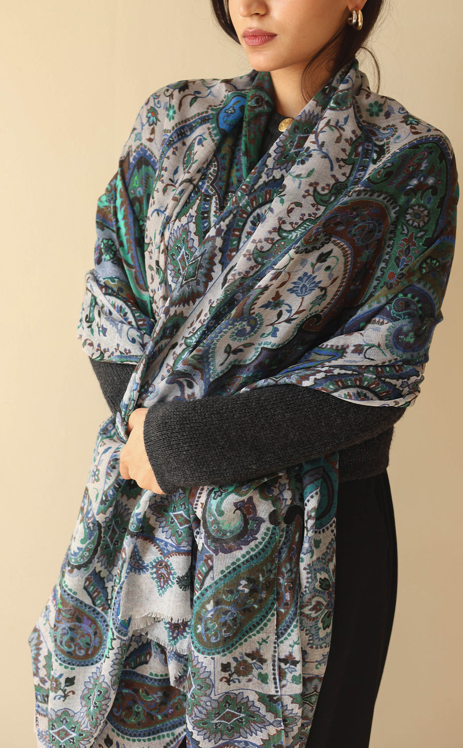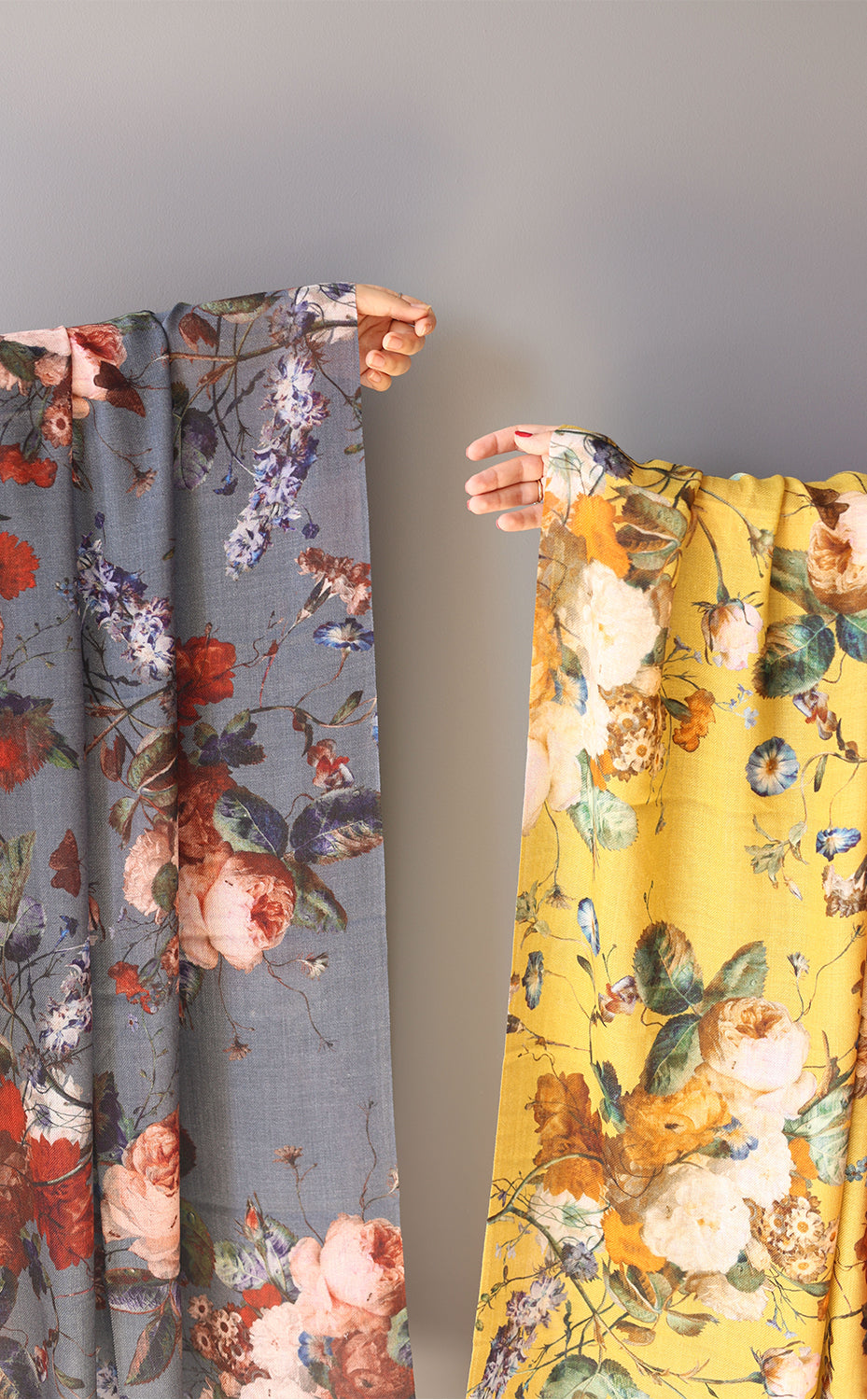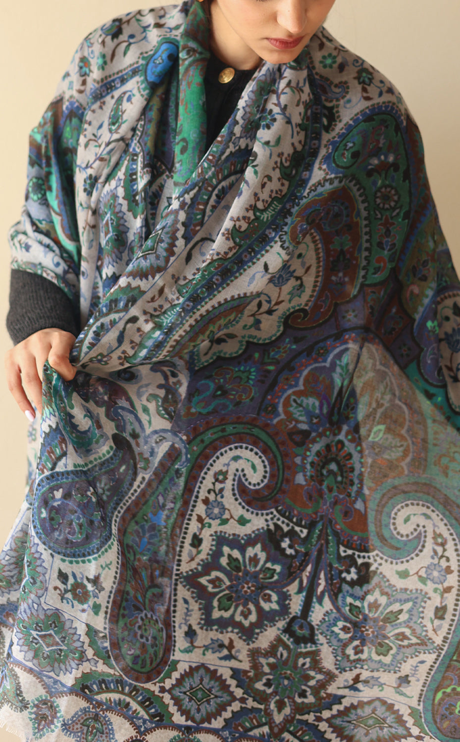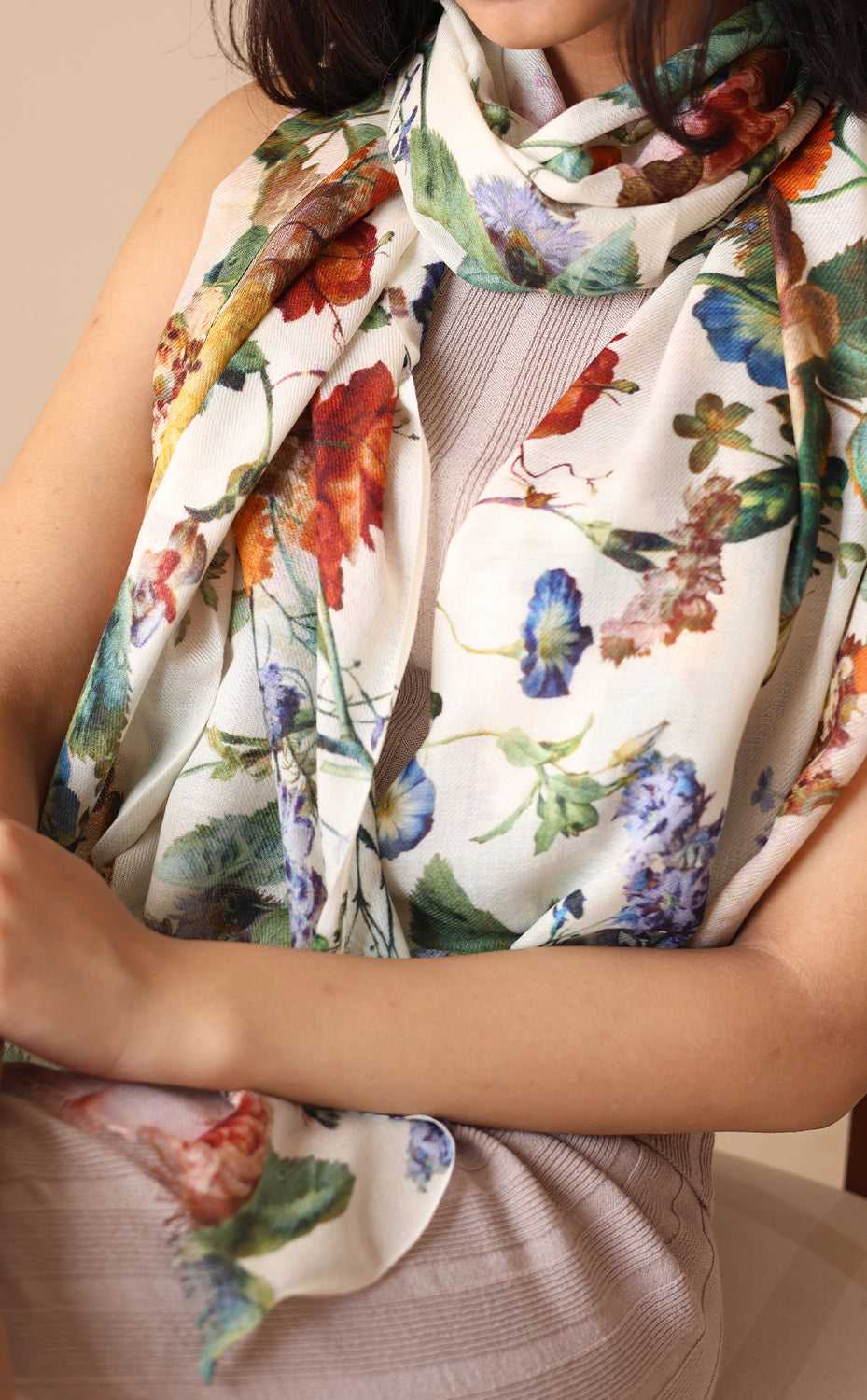 digitally printed rectangle foulards (stole oblong) in luxurious fabrics like silk wool, modal cashmere & modal silk.